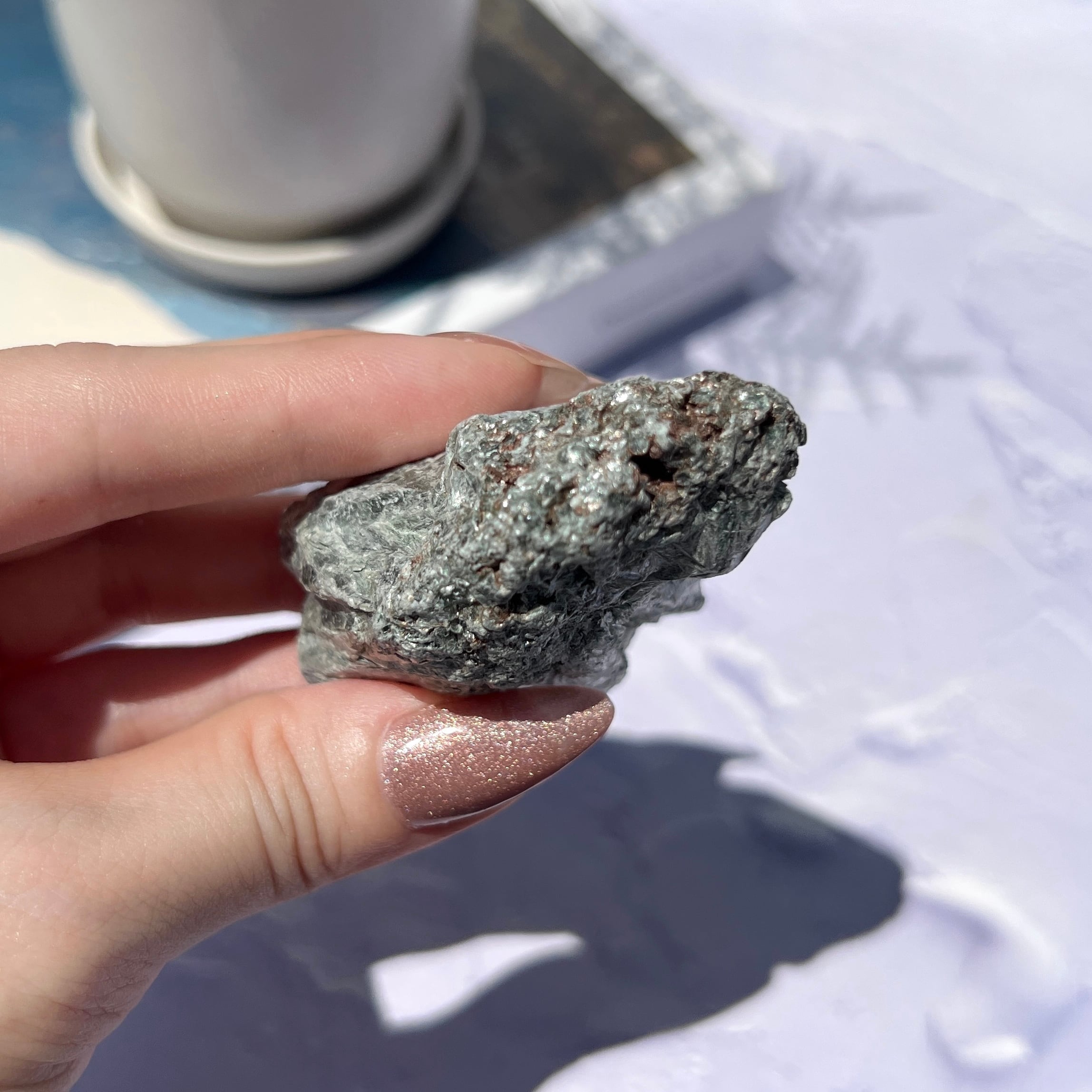 原石は磨き石と比べてシルバーが強く、よりエンジェリックな雰囲気を感じさせます。