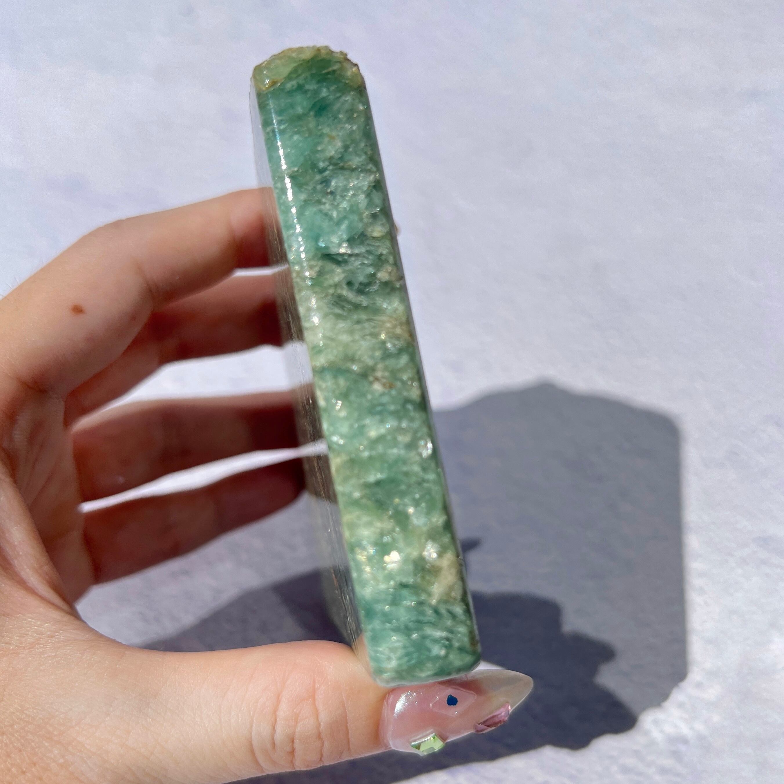 パラゴナイトは白雲母に関連する鉱物で、爽やかなミントカラーにキラキラとした雲母が輝きます。