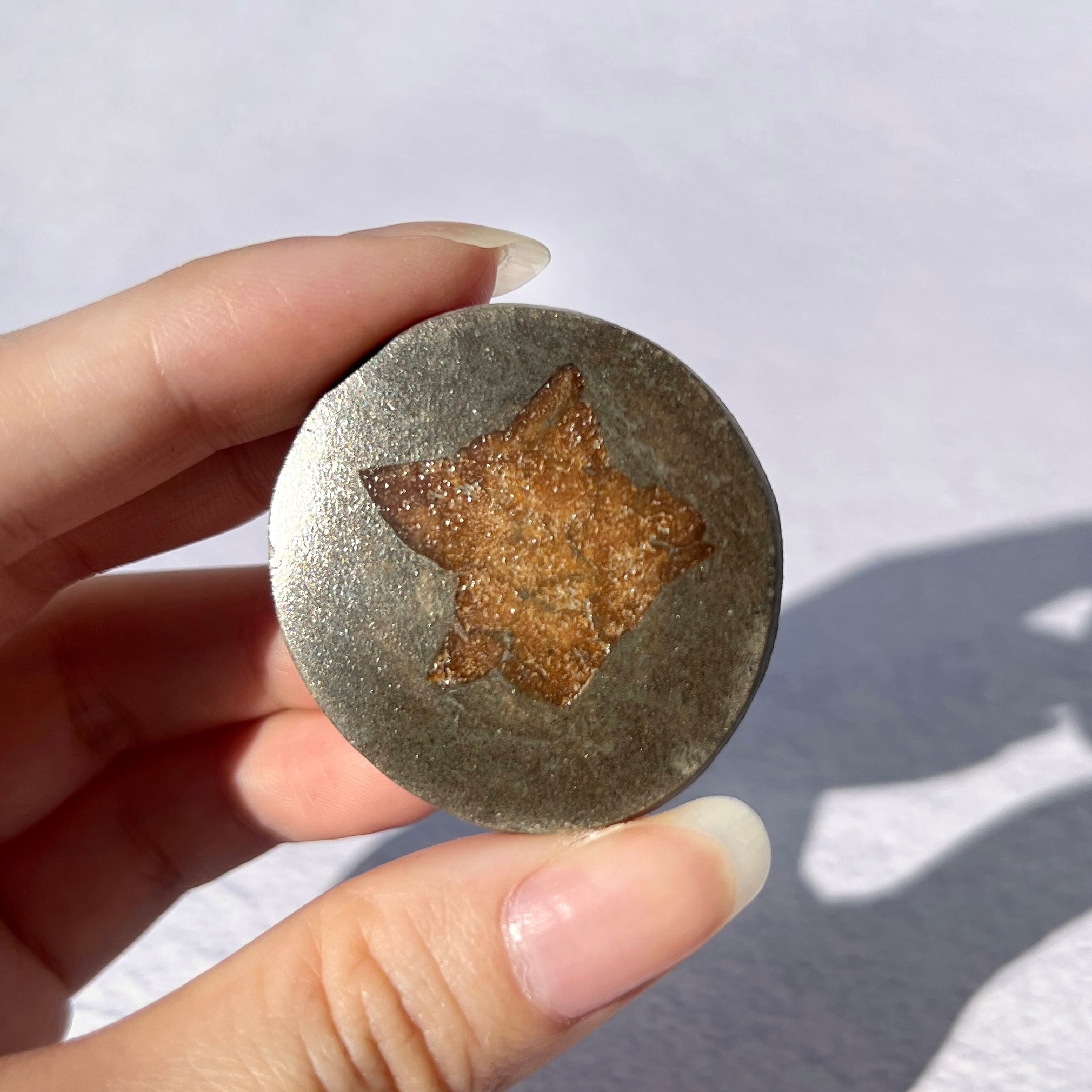 完全に近い丸い玉(ノジュール)を割ると出てくる、可愛らしい星のようなグレンドナイト。