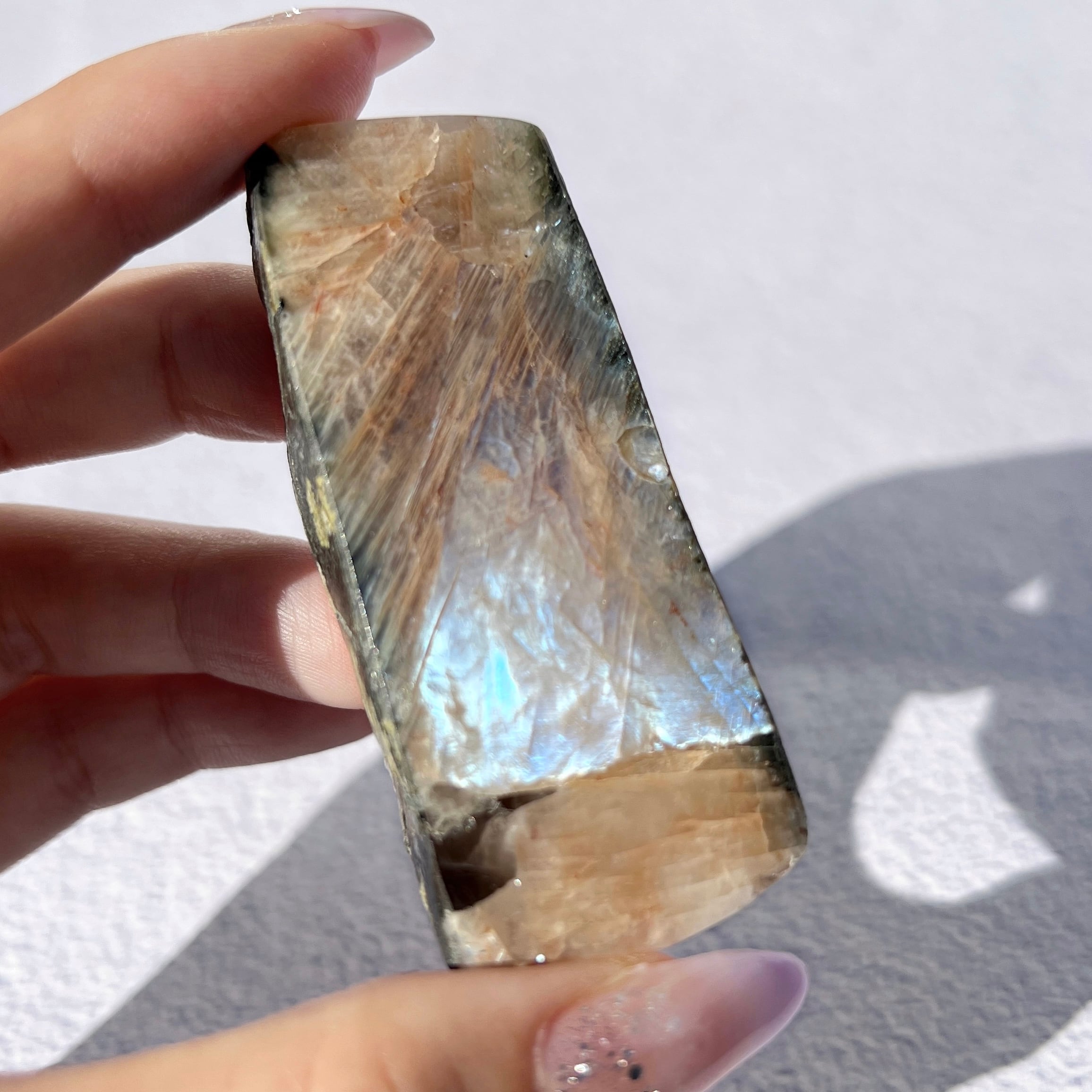 月光をそのまま閉じ込めたような神秘的な石、ベロモライト。ロシアンムーンストーンとも呼ばれています。