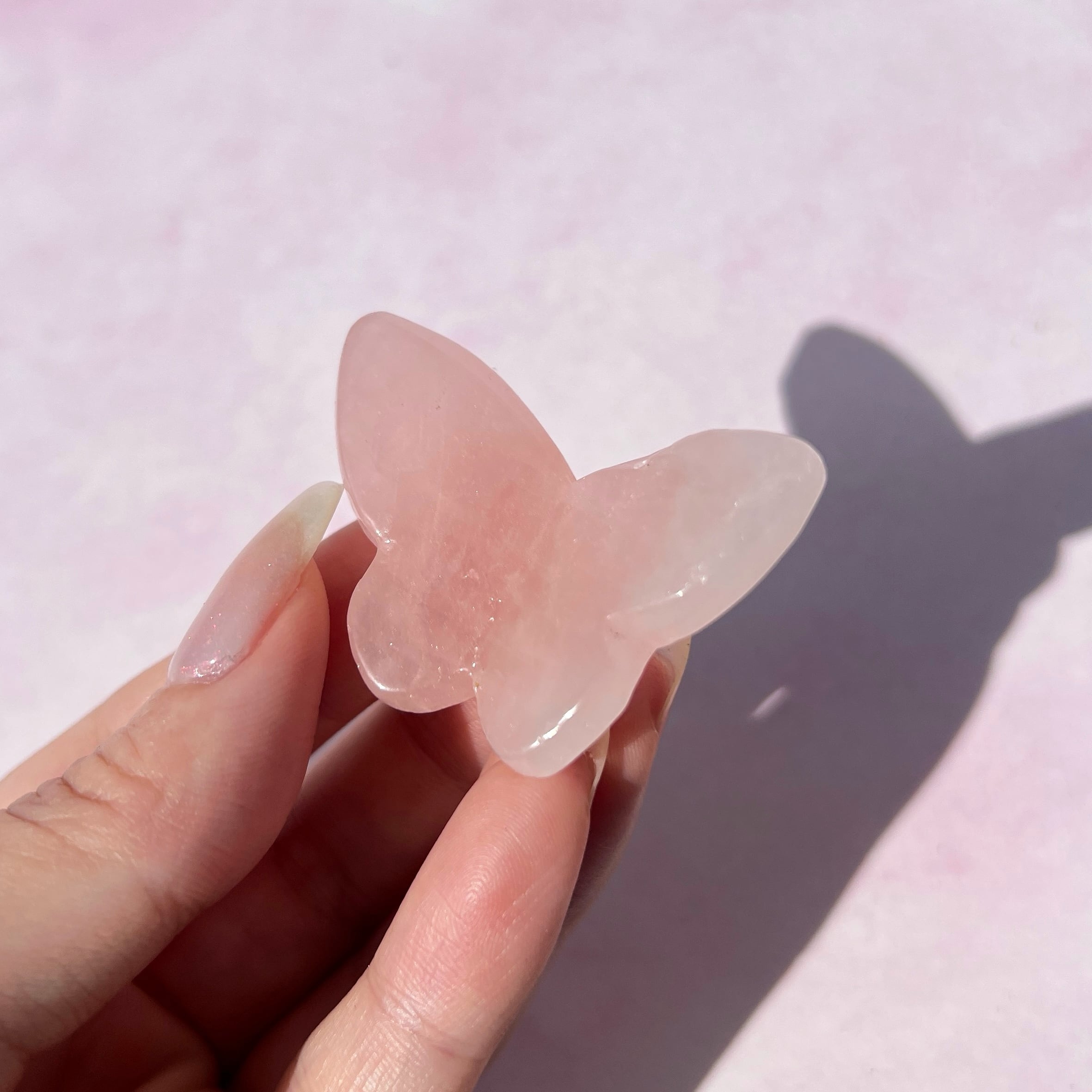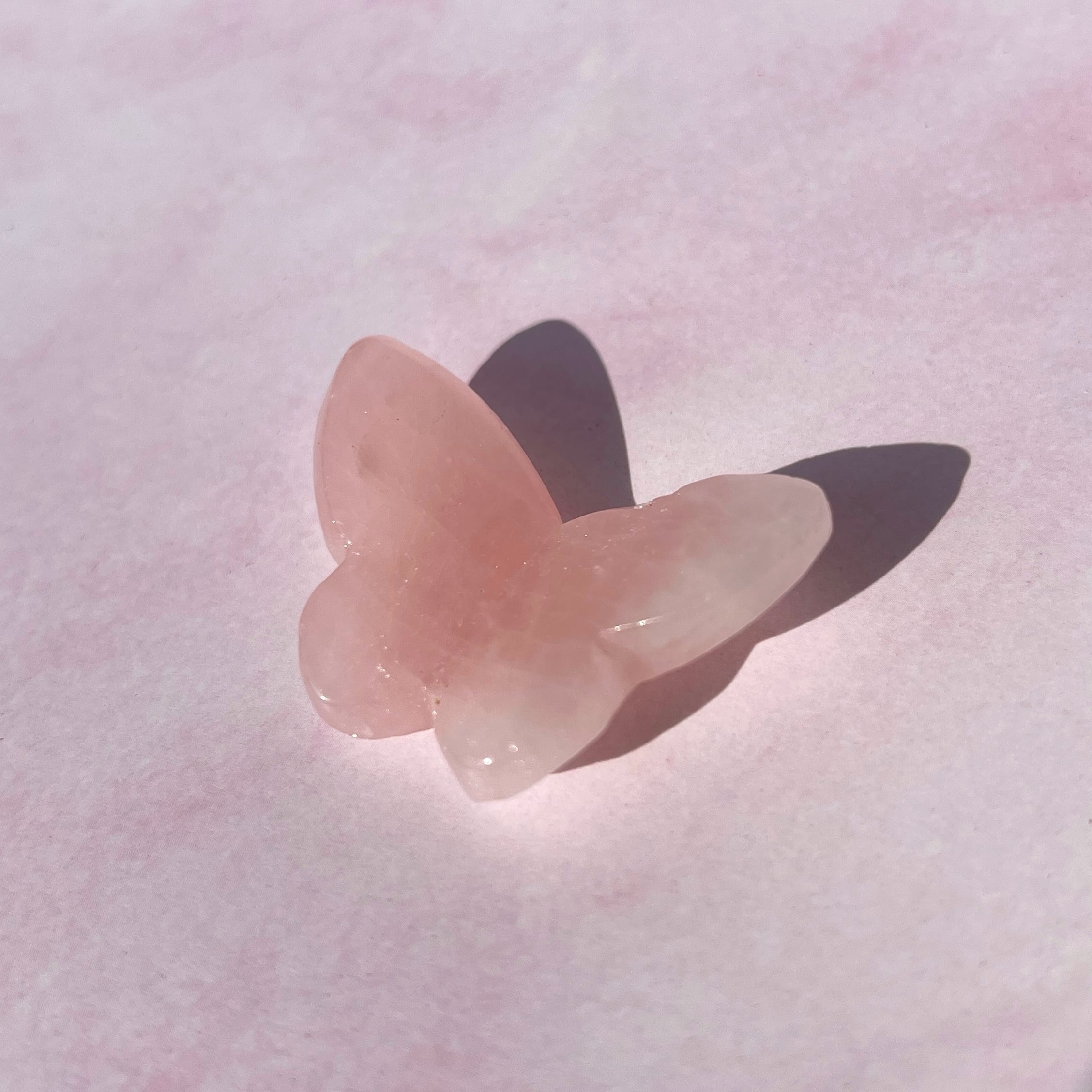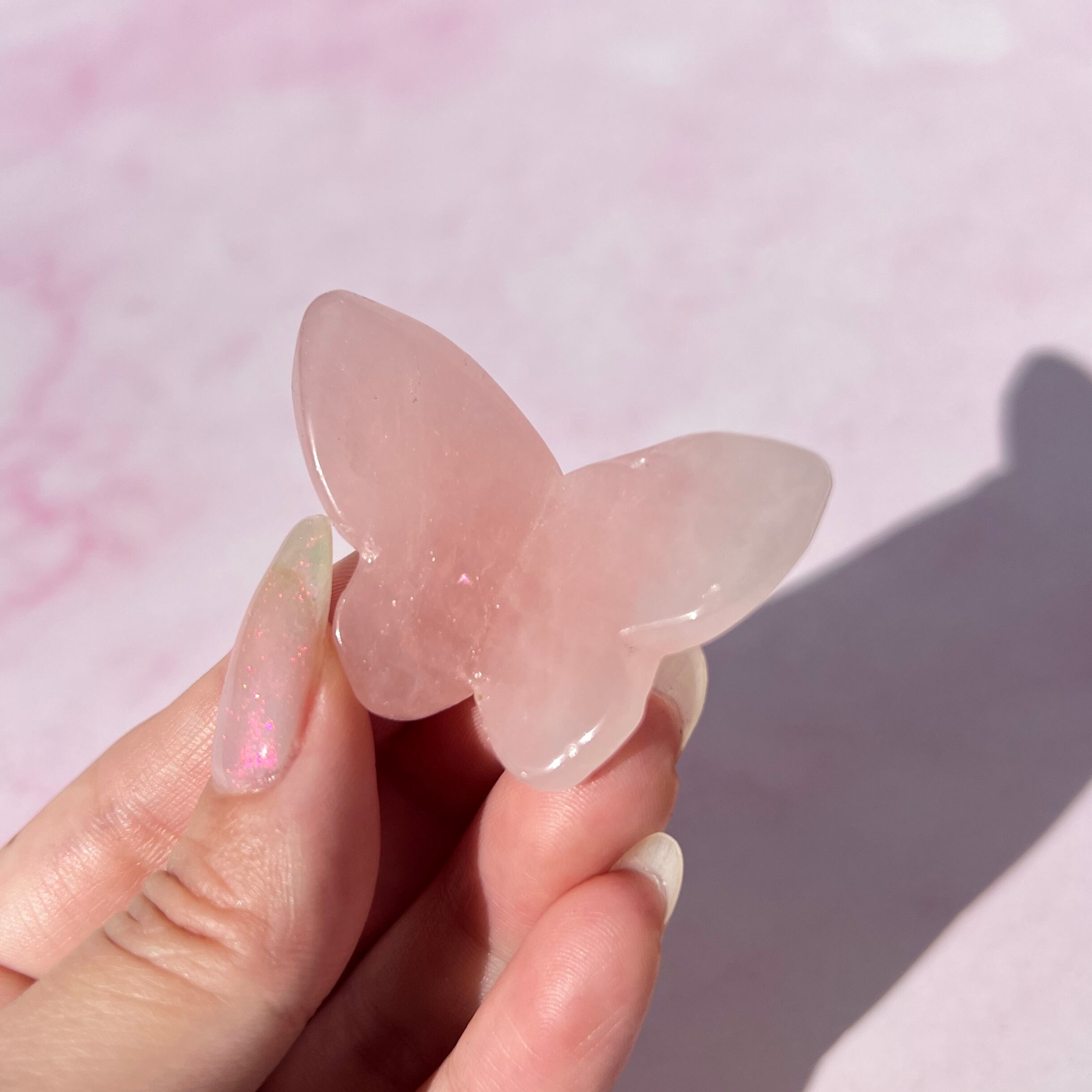 優しいパウダリーピンクのようなローズクォーツの蝶。
