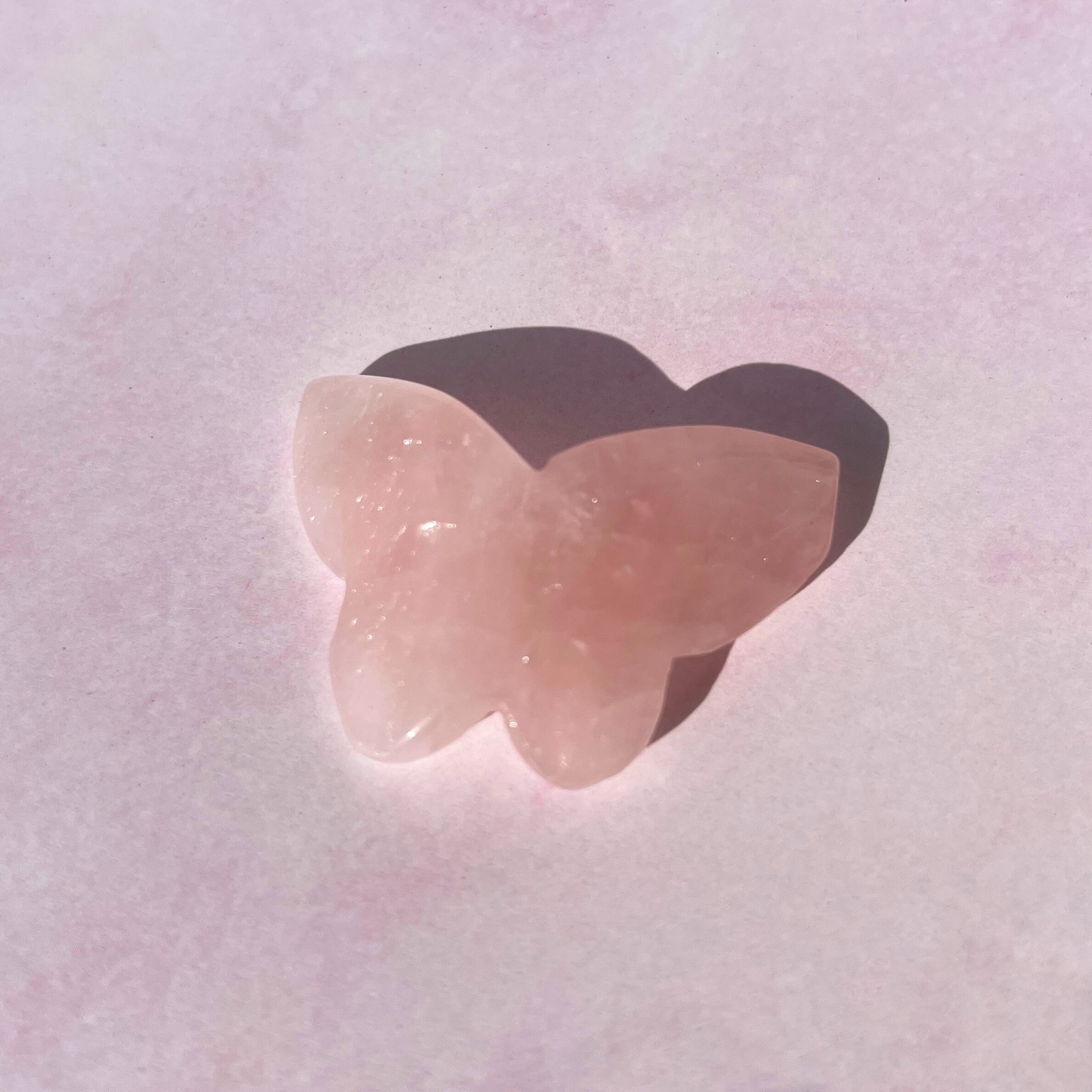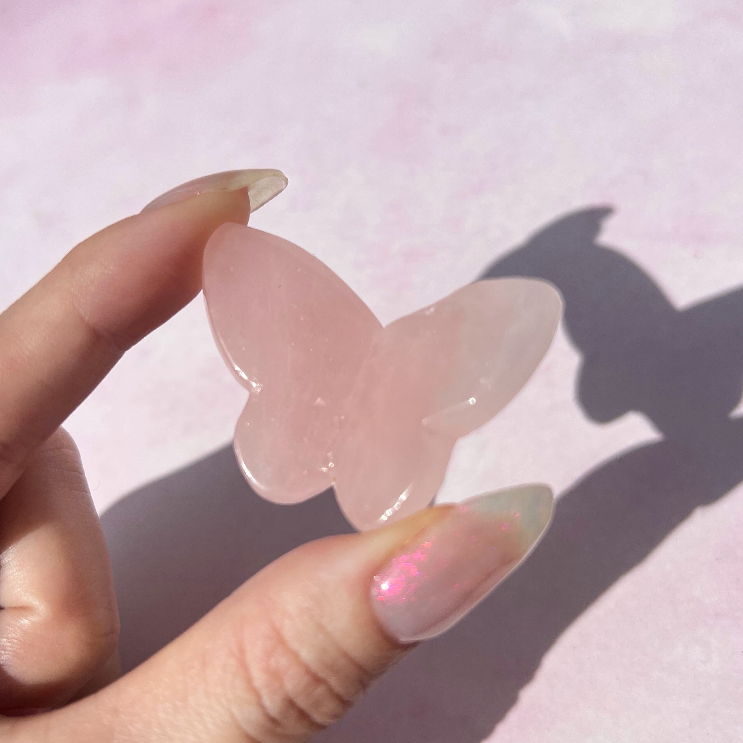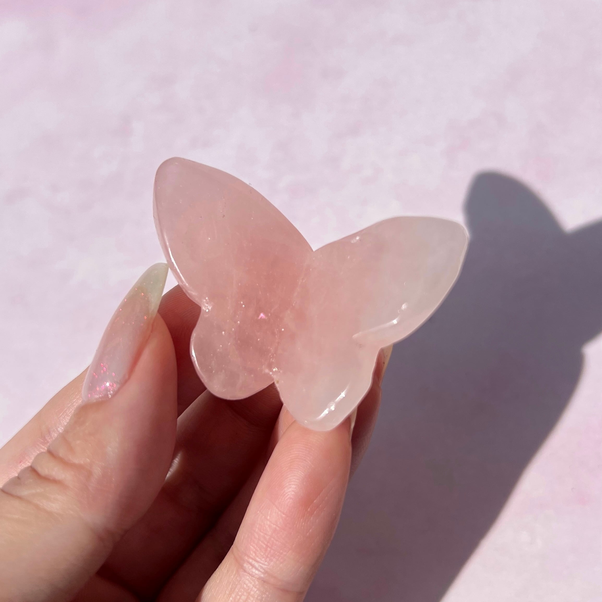 優しいパウダリーピンクのようなローズクォーツの蝶。