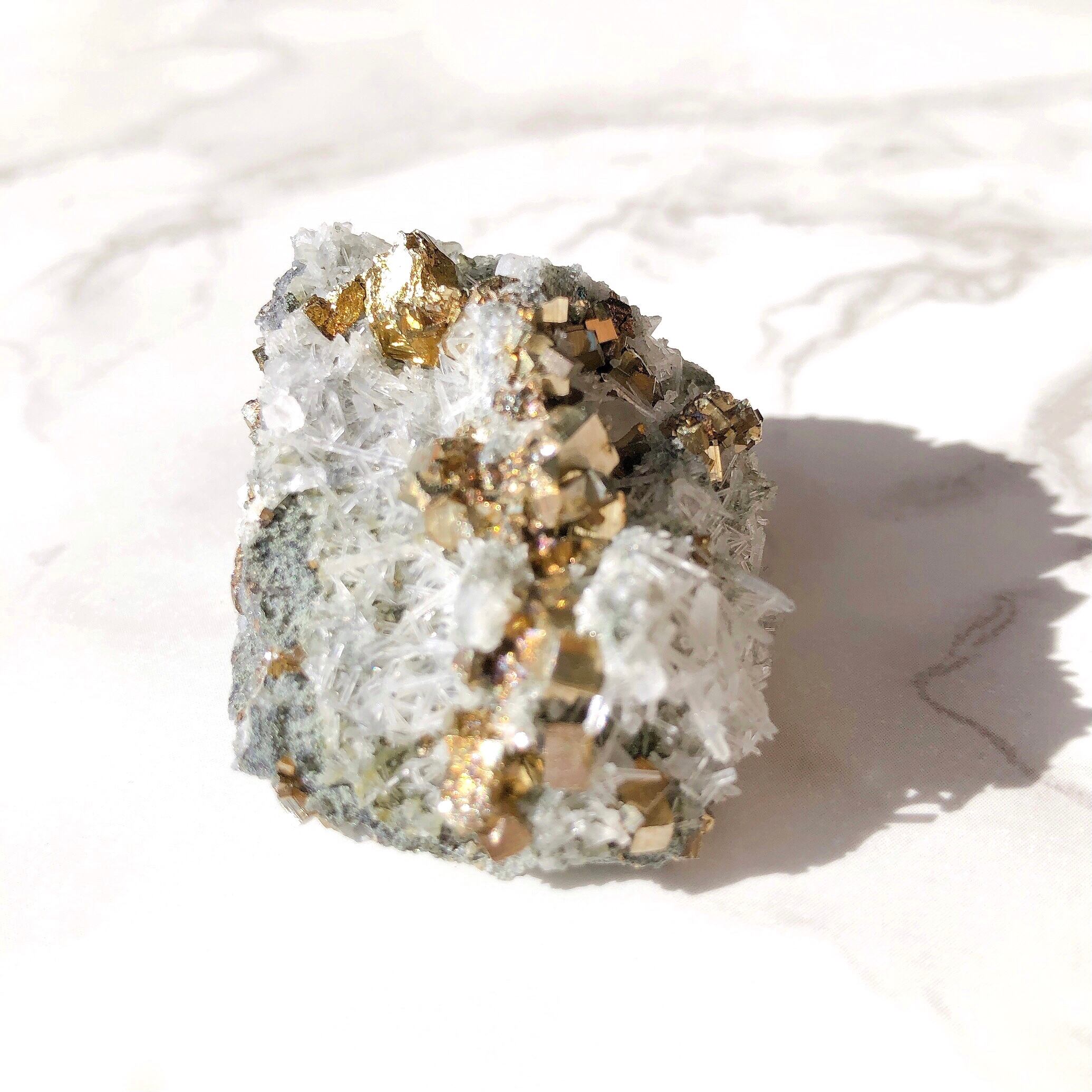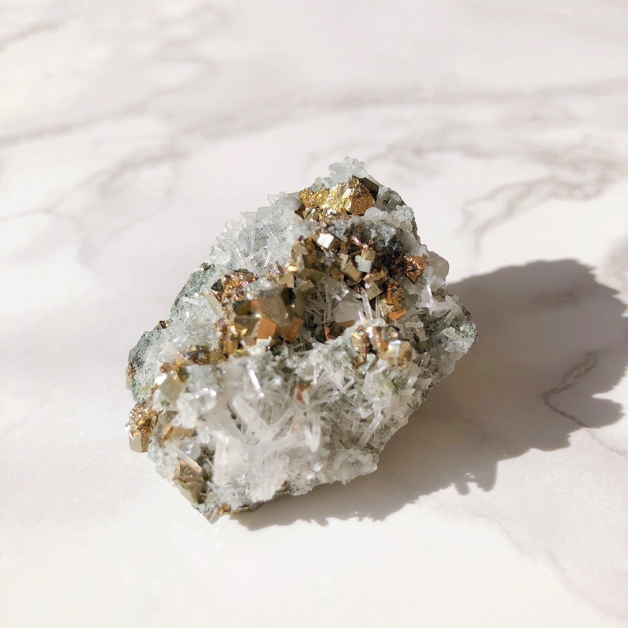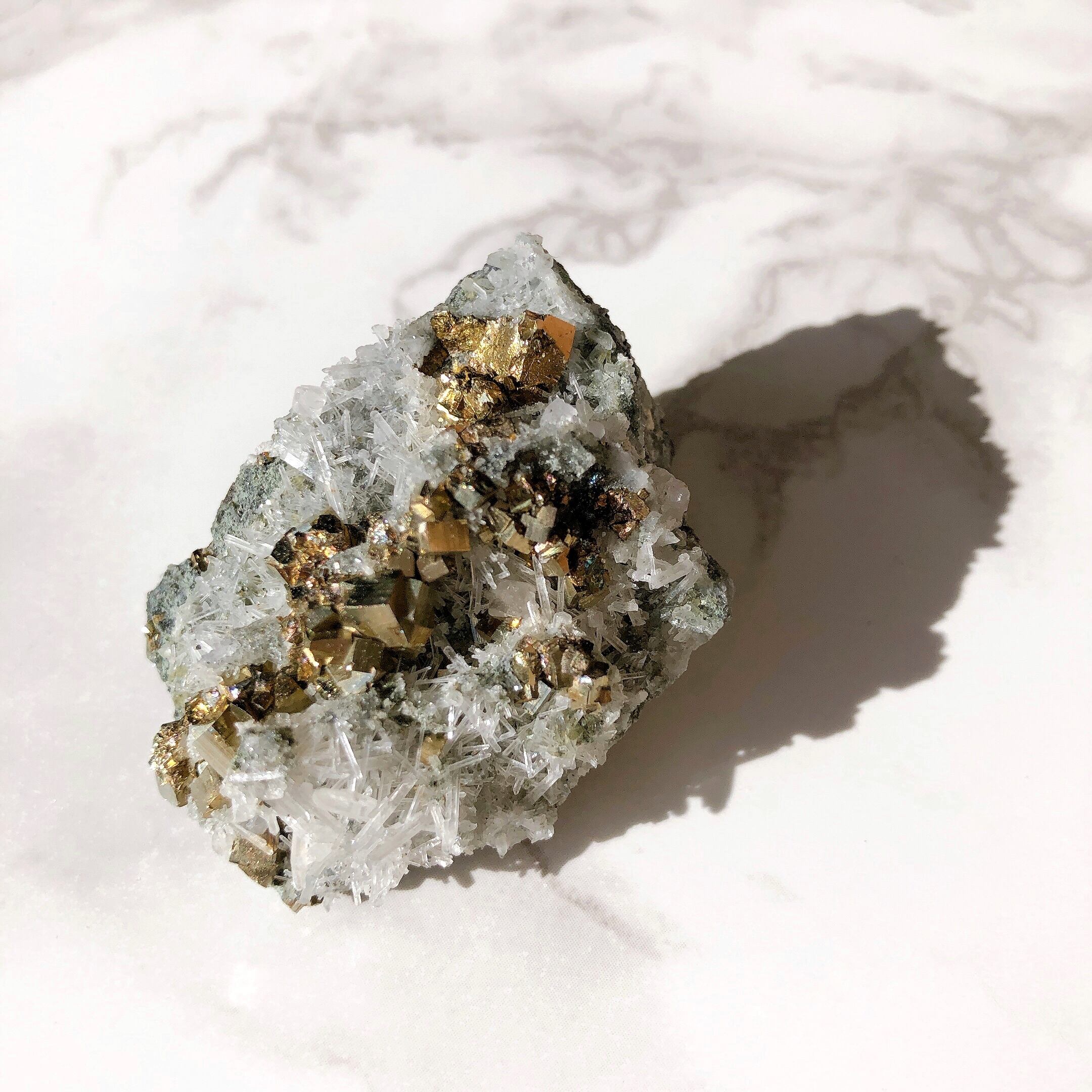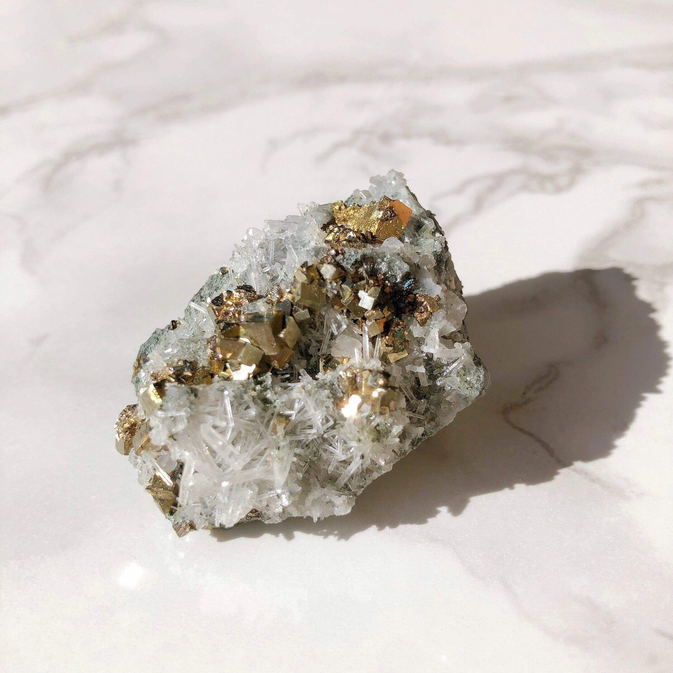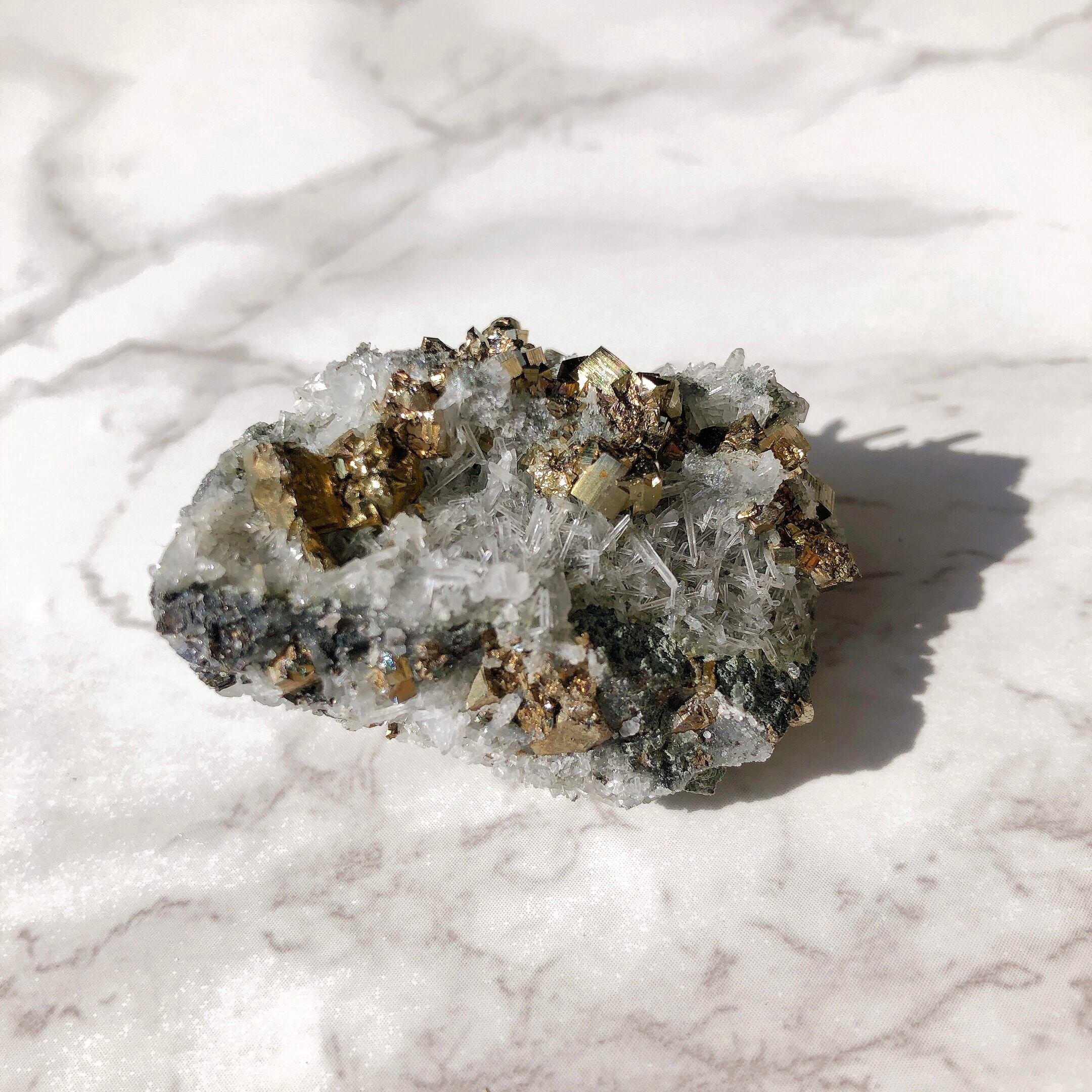パイライト・水晶・カルサイト✦ 共生 ミニ原石 (ボリーバ, ブルガリア産) BL14