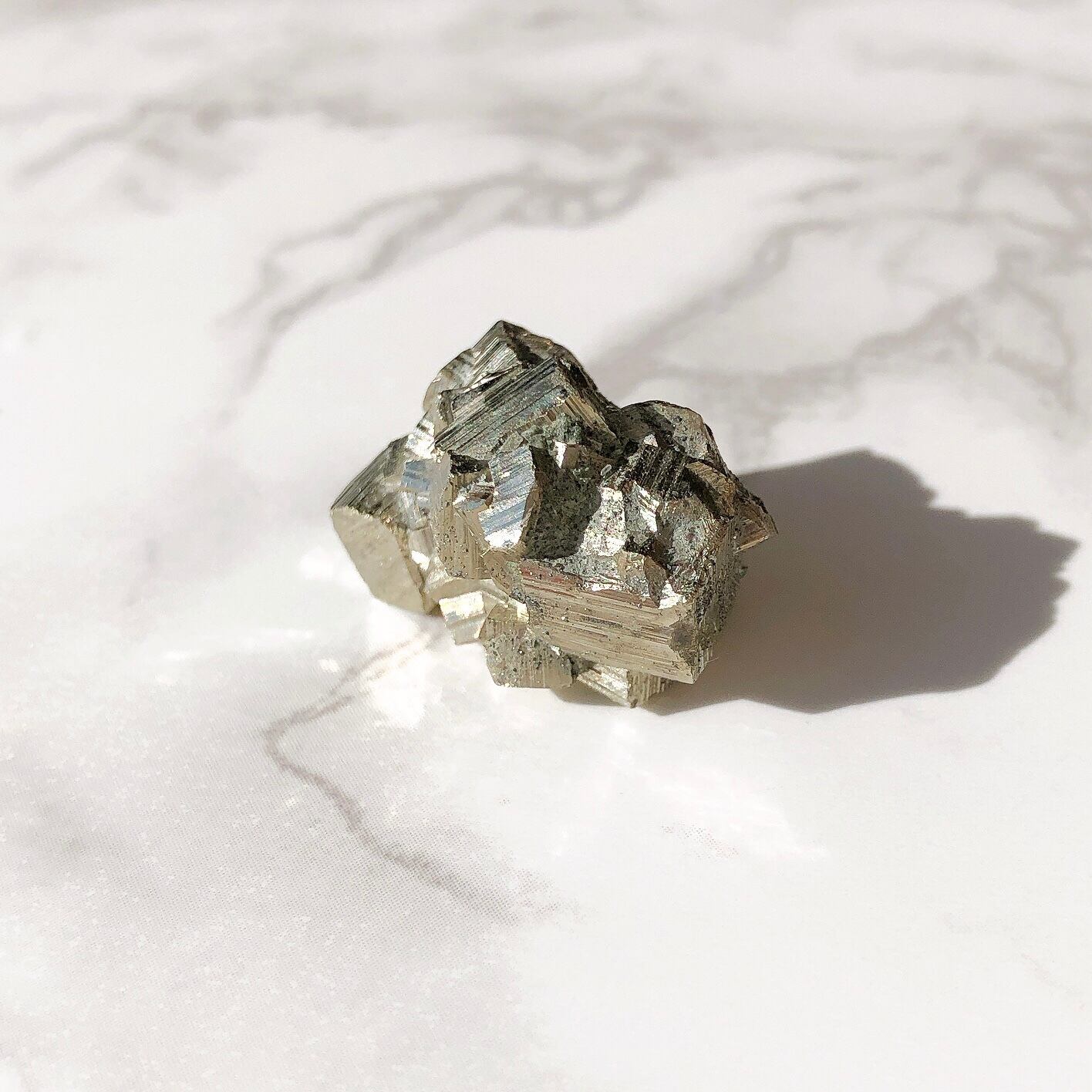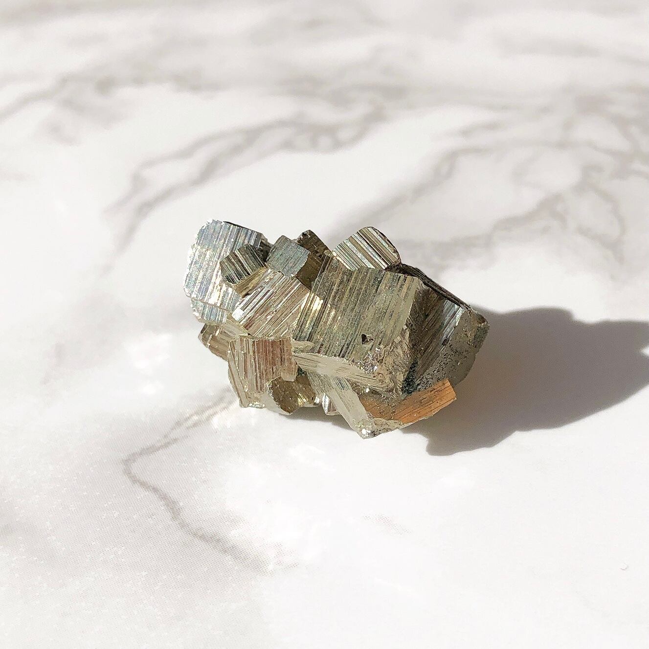 パイライトは火山活動によって生成された、別名黄鉄鉱と呼ばれる鉱石。立方体をはじめとした多面体の結晶が存在します。