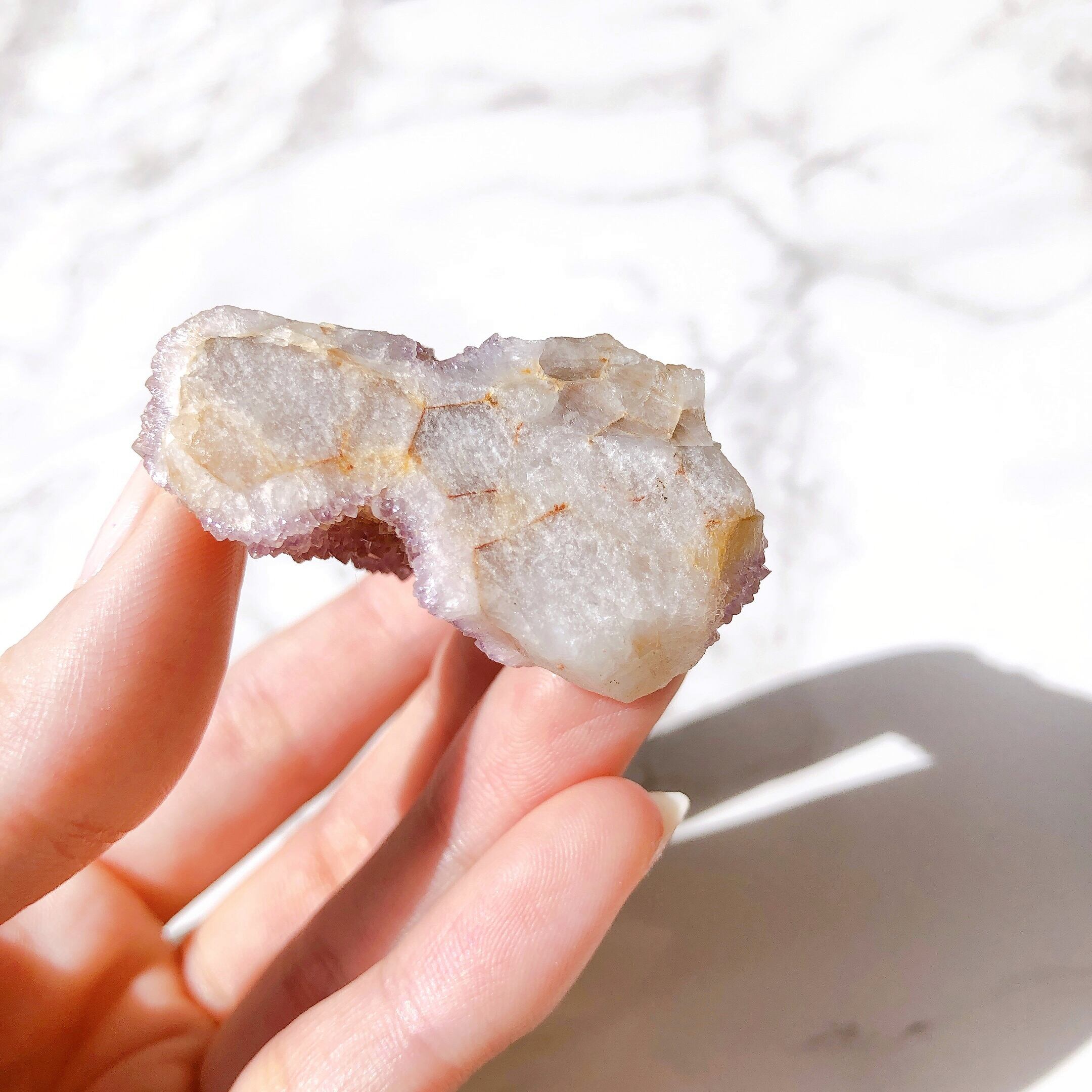 今回Joelleがご紹介するものの中には、ライラックカラーに一部シトリン由来の黄味が混ざった個体もあります。
