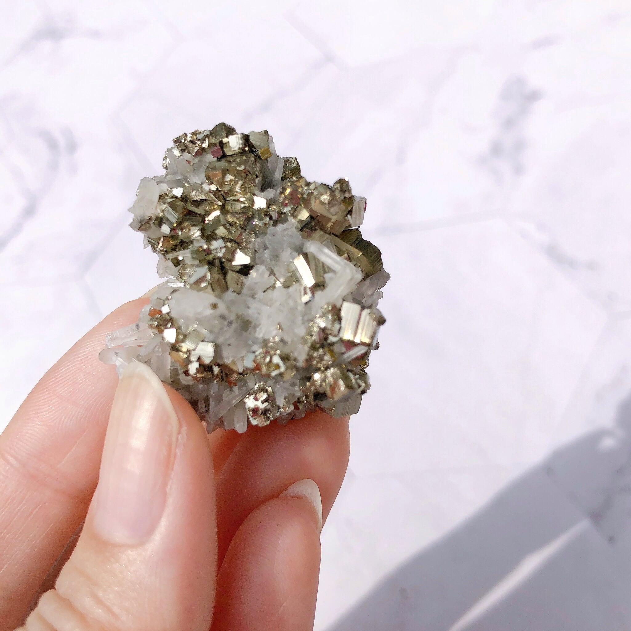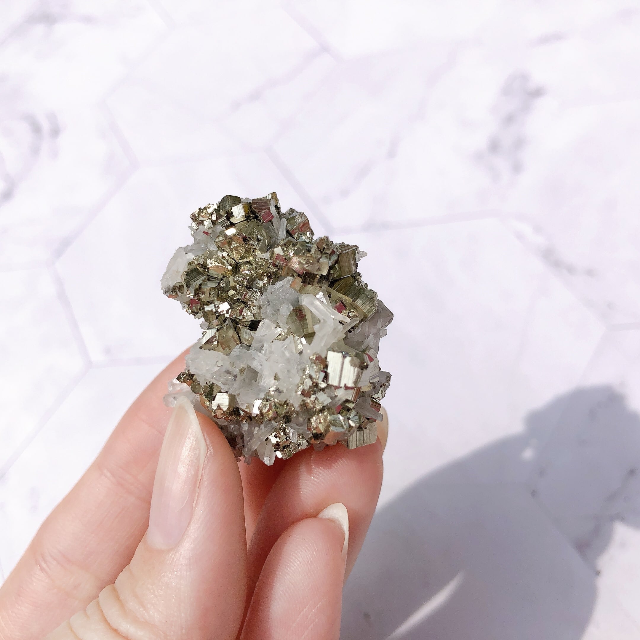 パイライト・水晶 ⊹ 共生 ミニ原石 〈ロドピ山脈, ブルガリア産〉PQ10