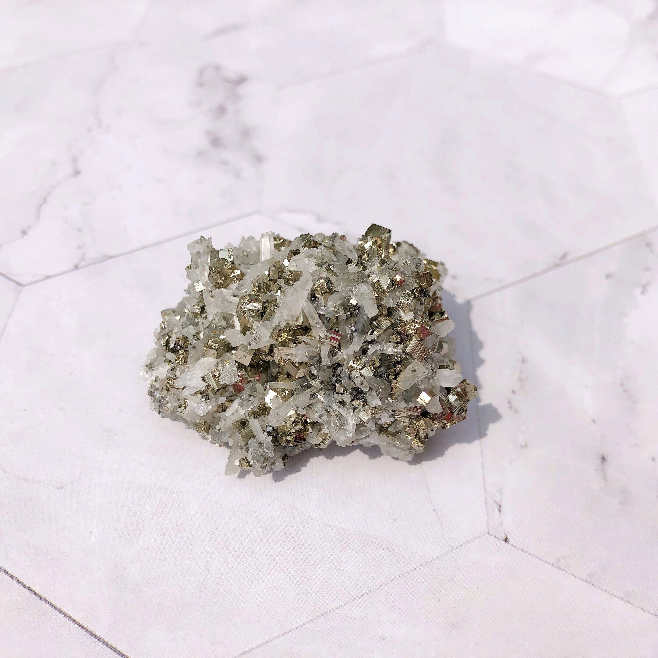 パイライト・水晶 ⊹ 共生 ミニ原石 〈ロドピ山脈, ブルガリア産〉PQ04
