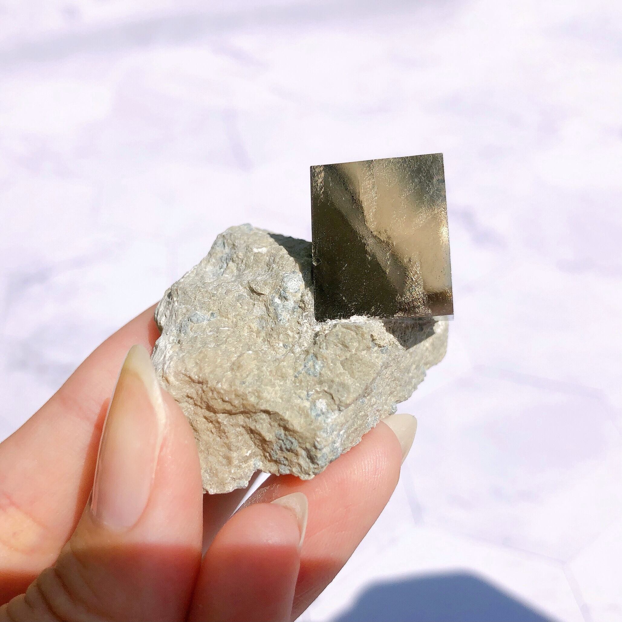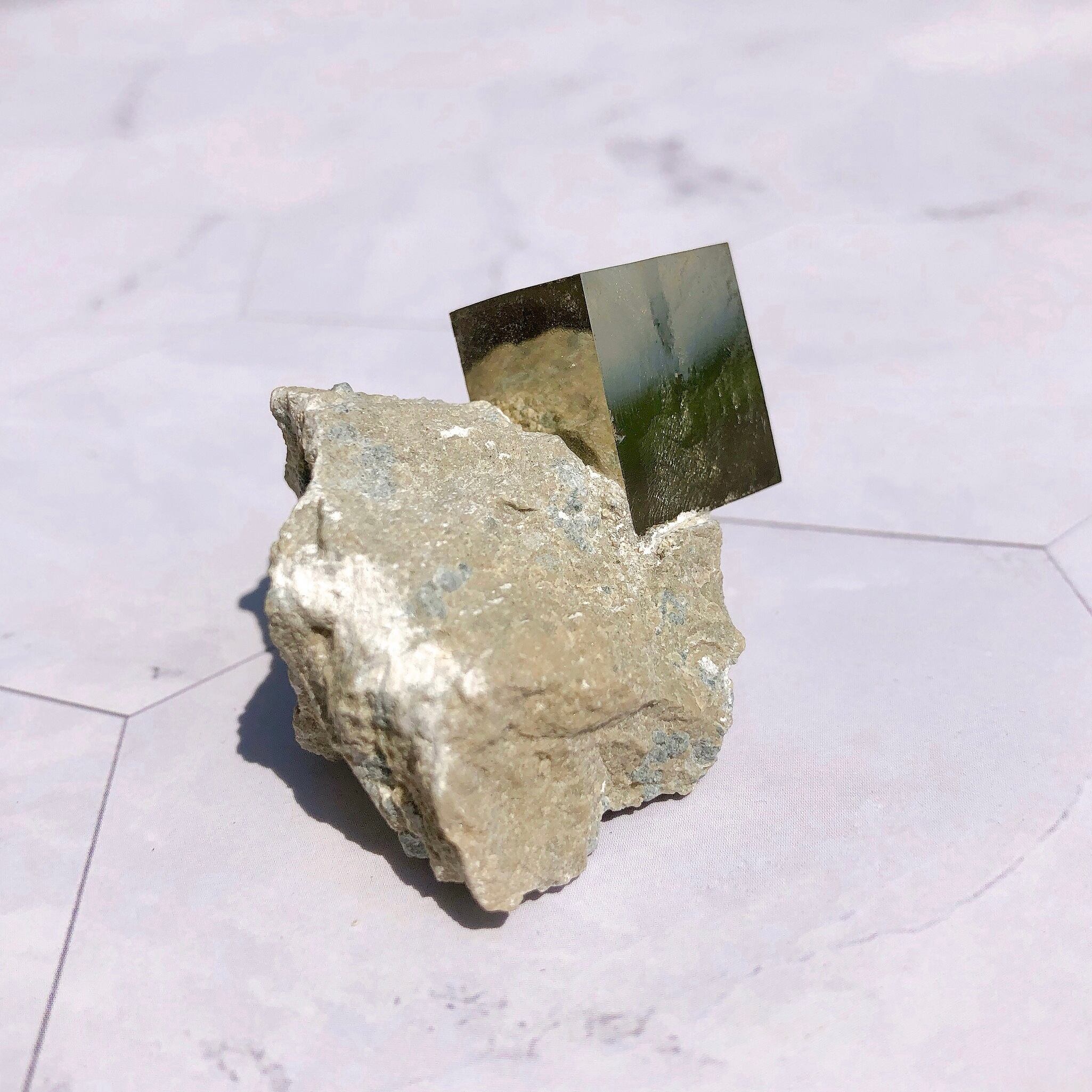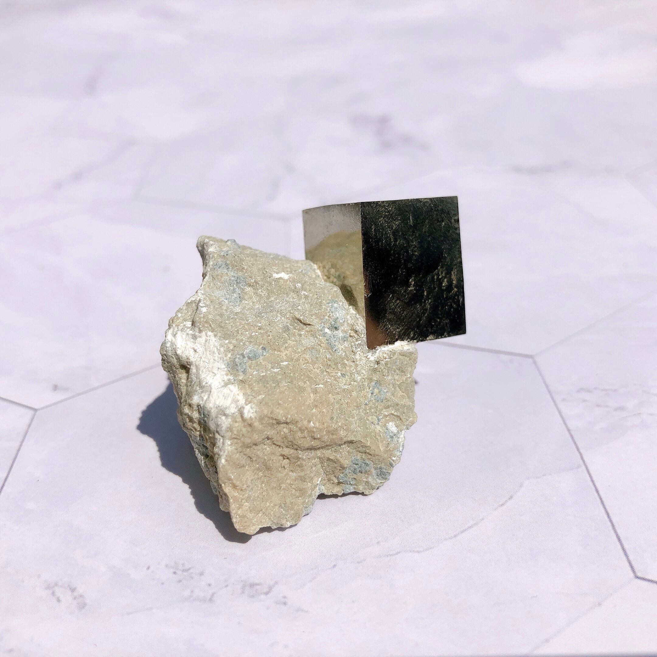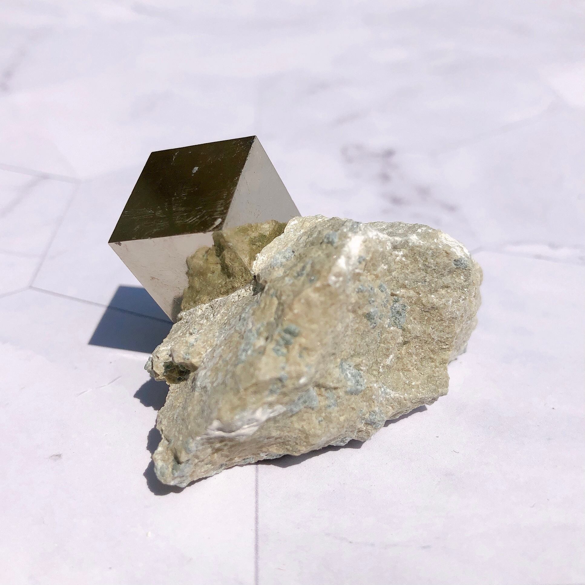 パイライトキューブ ⧉ 母岩付き〈スペイン, ナバフン産〉PC03