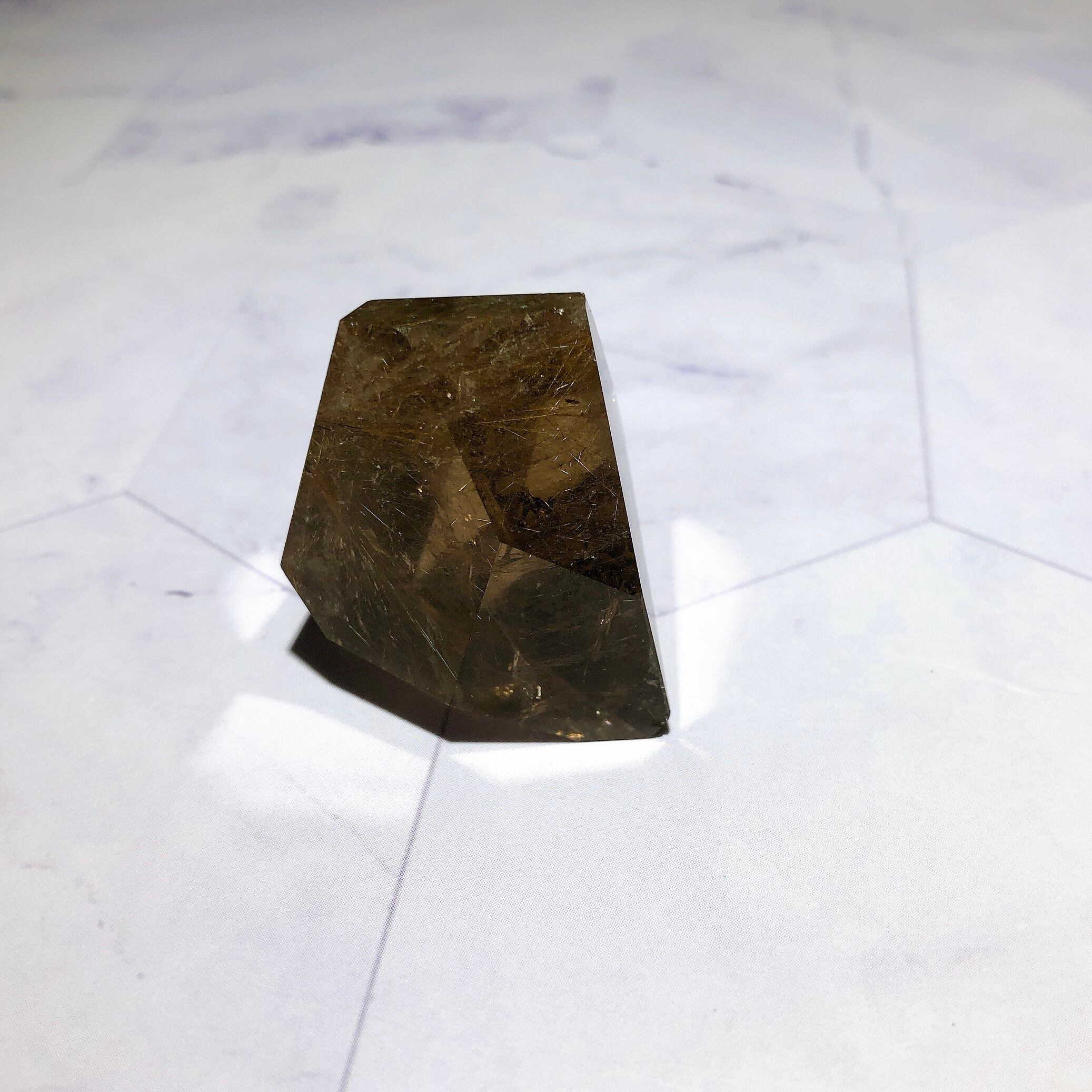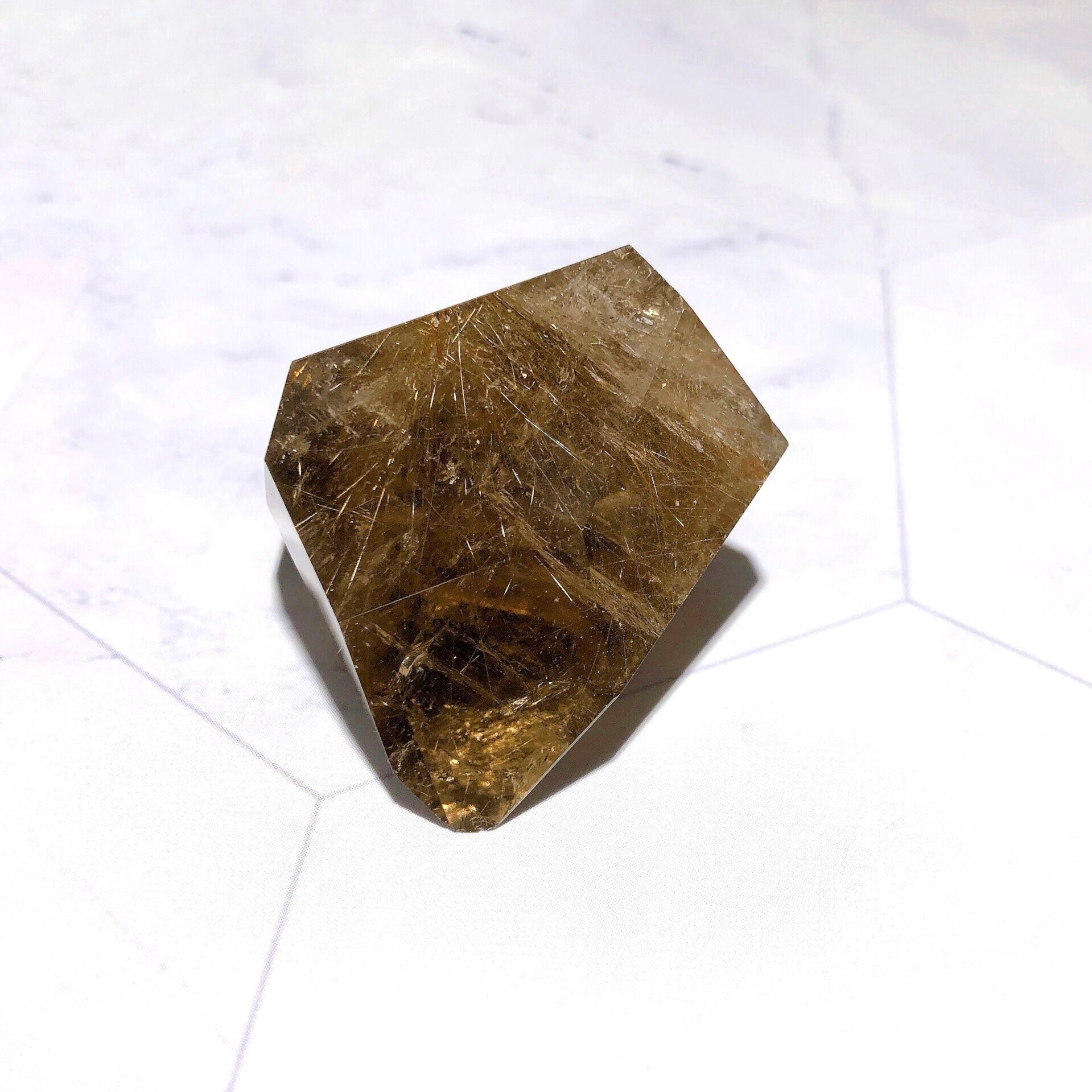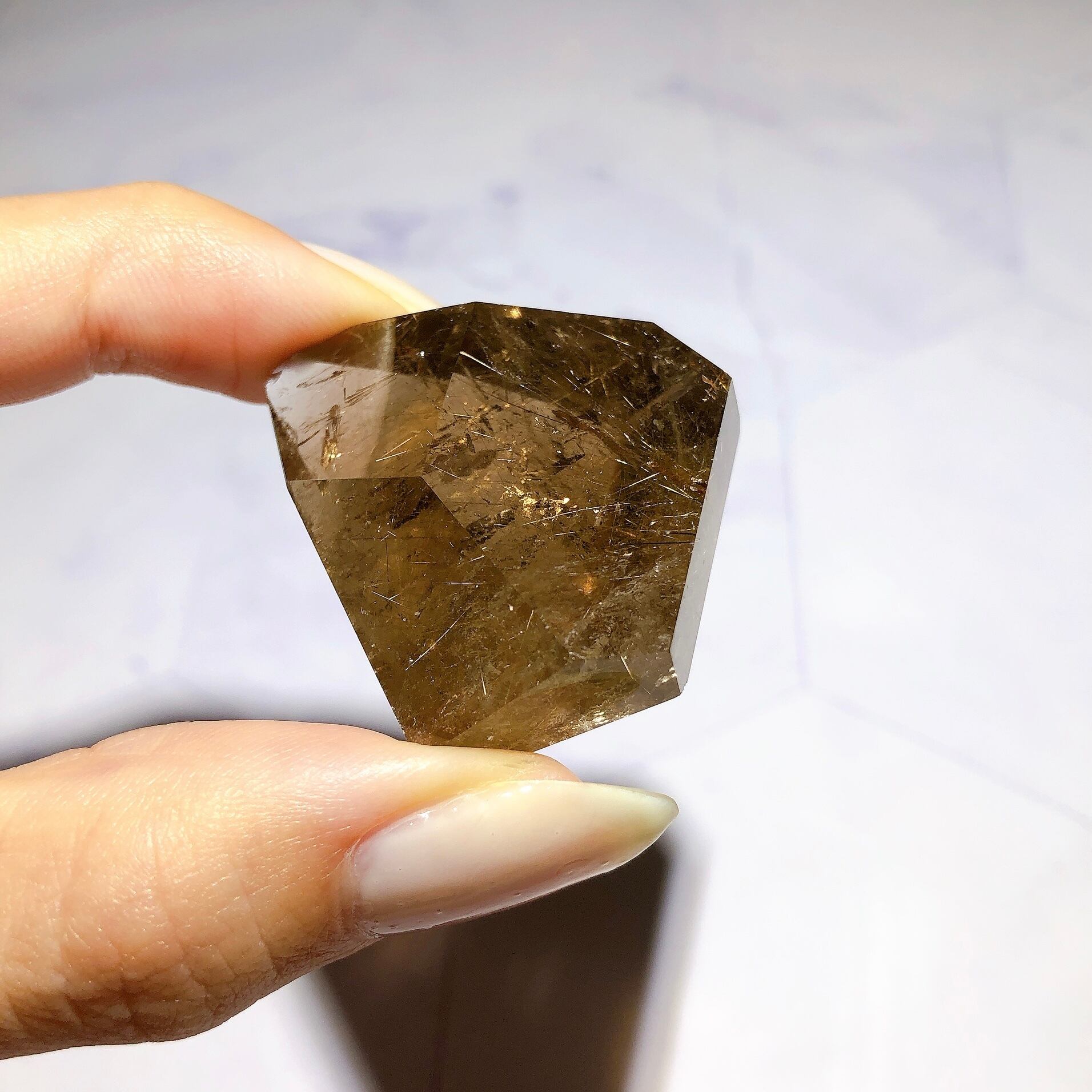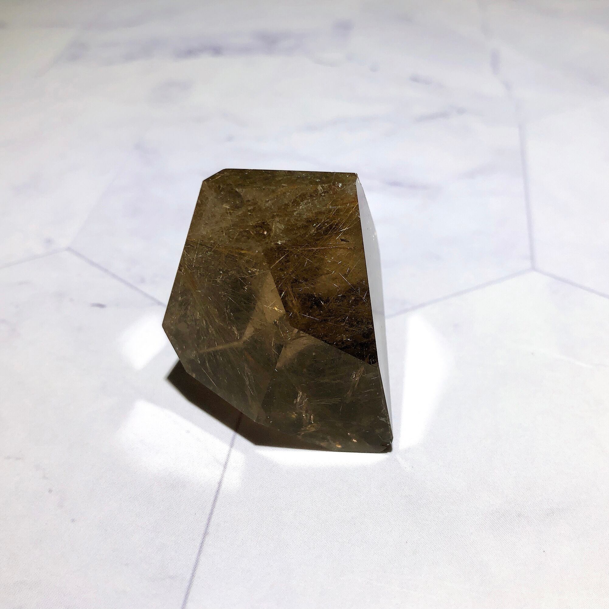 - 室内光で行っています。照明に当てているため、光の反射によって金針がより輝いて見えます。石をご覧いただく環境によって、見え方が多少異なる場合がございます。