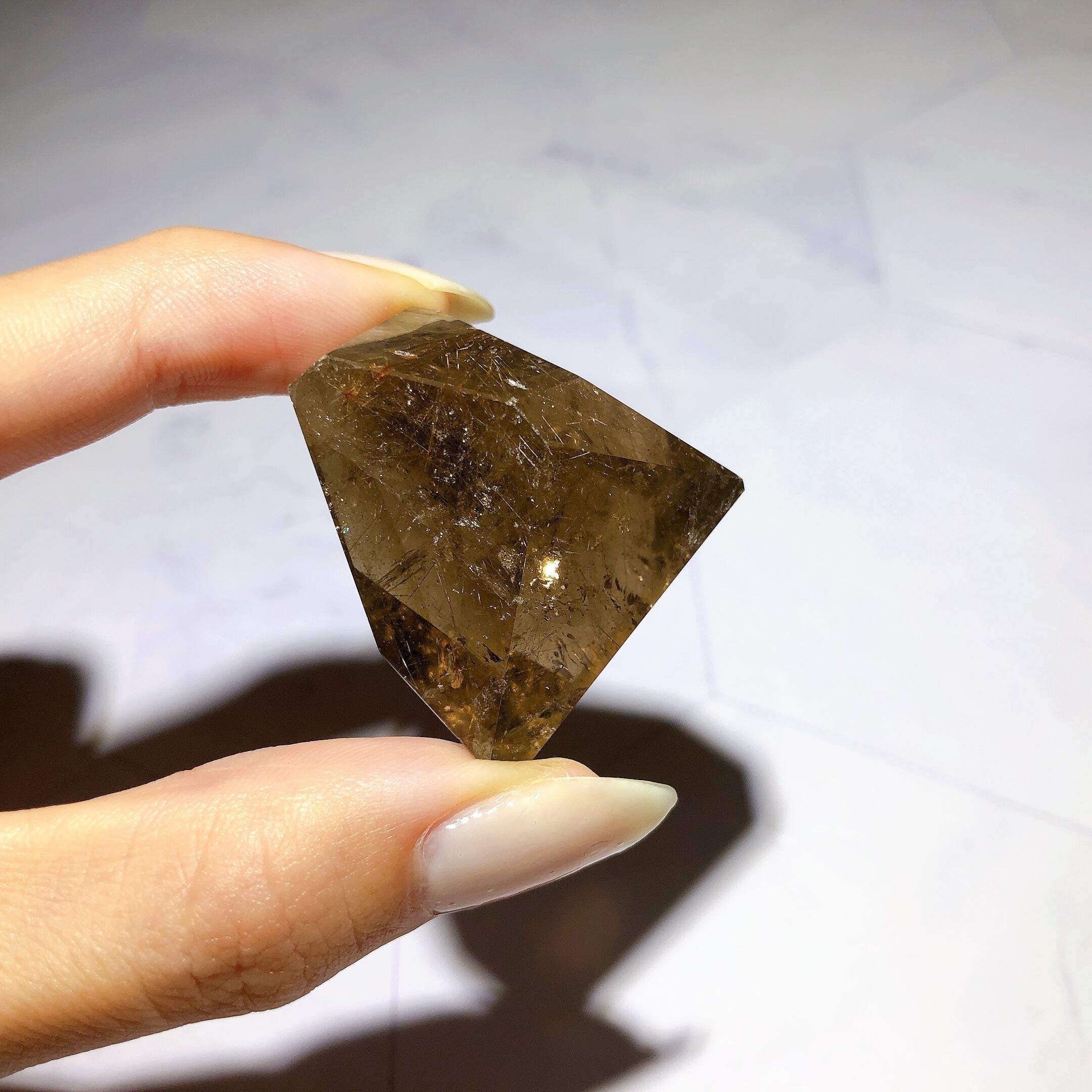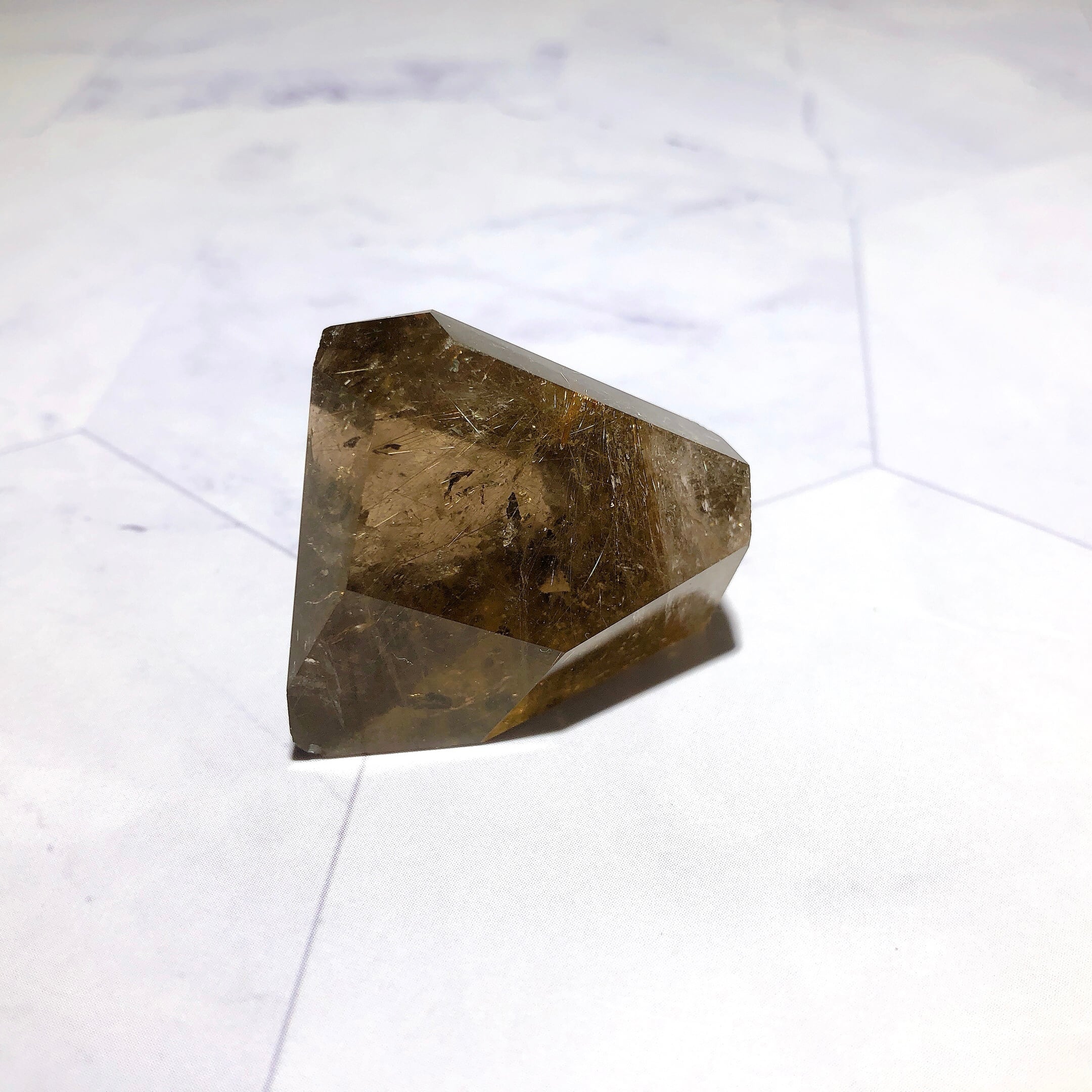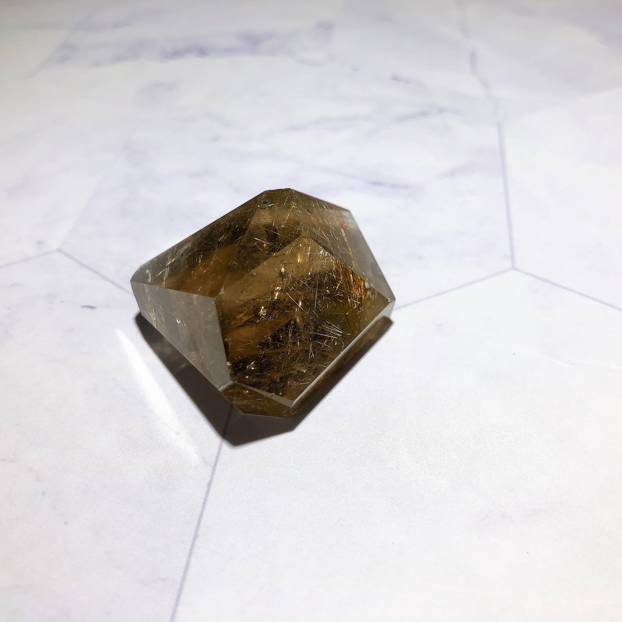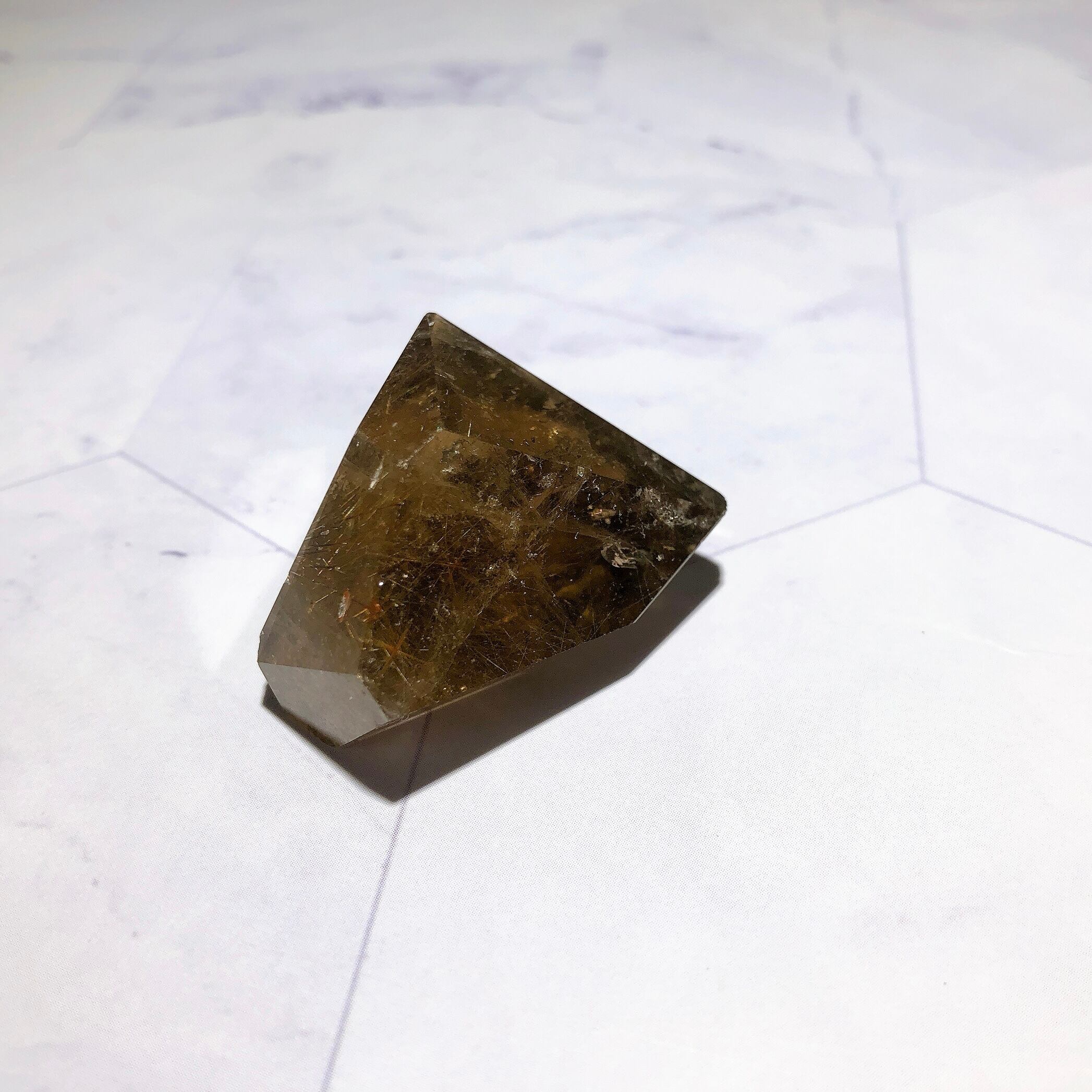 - 室内光で行っています。照明に当てているため、光の反射によって金針がより輝いて見えます。石をご覧いただく環境によって、見え方が多少異なる場合がございます。