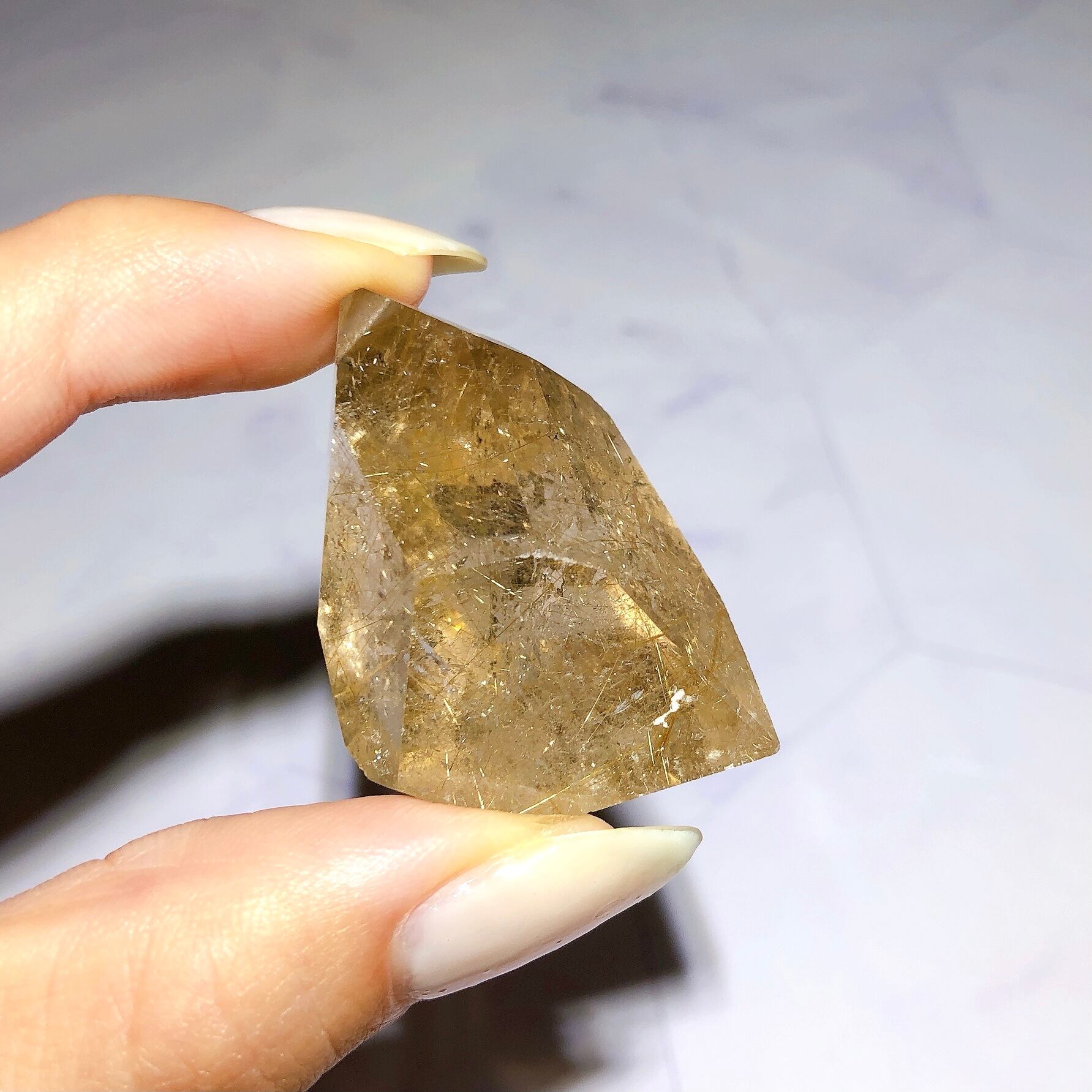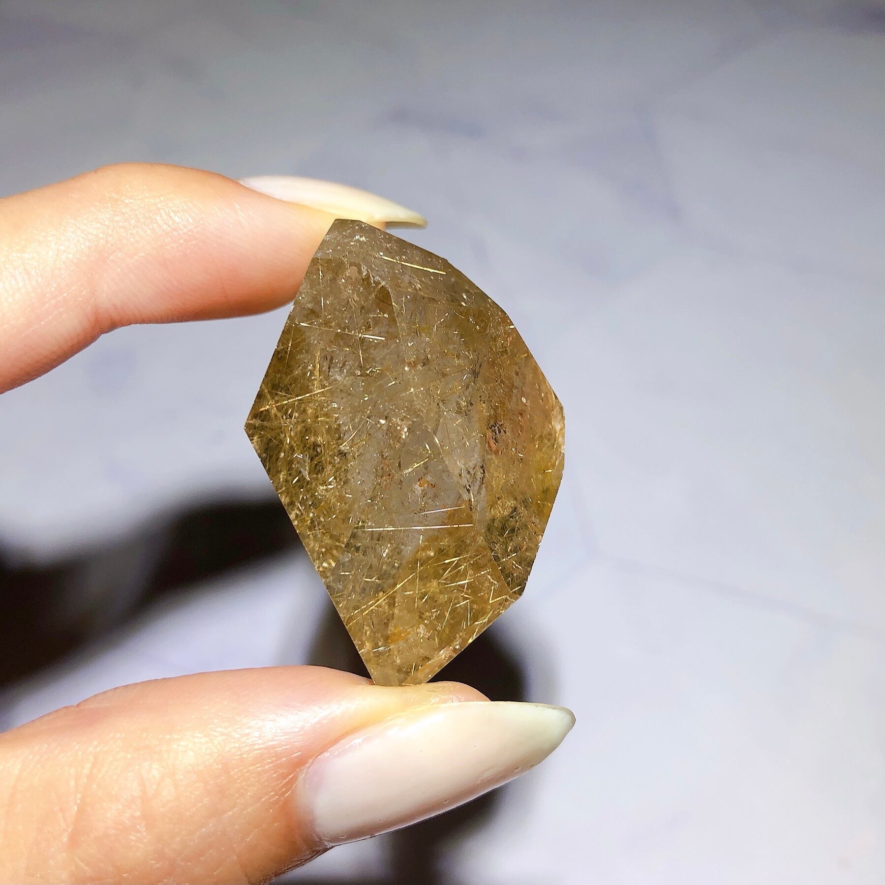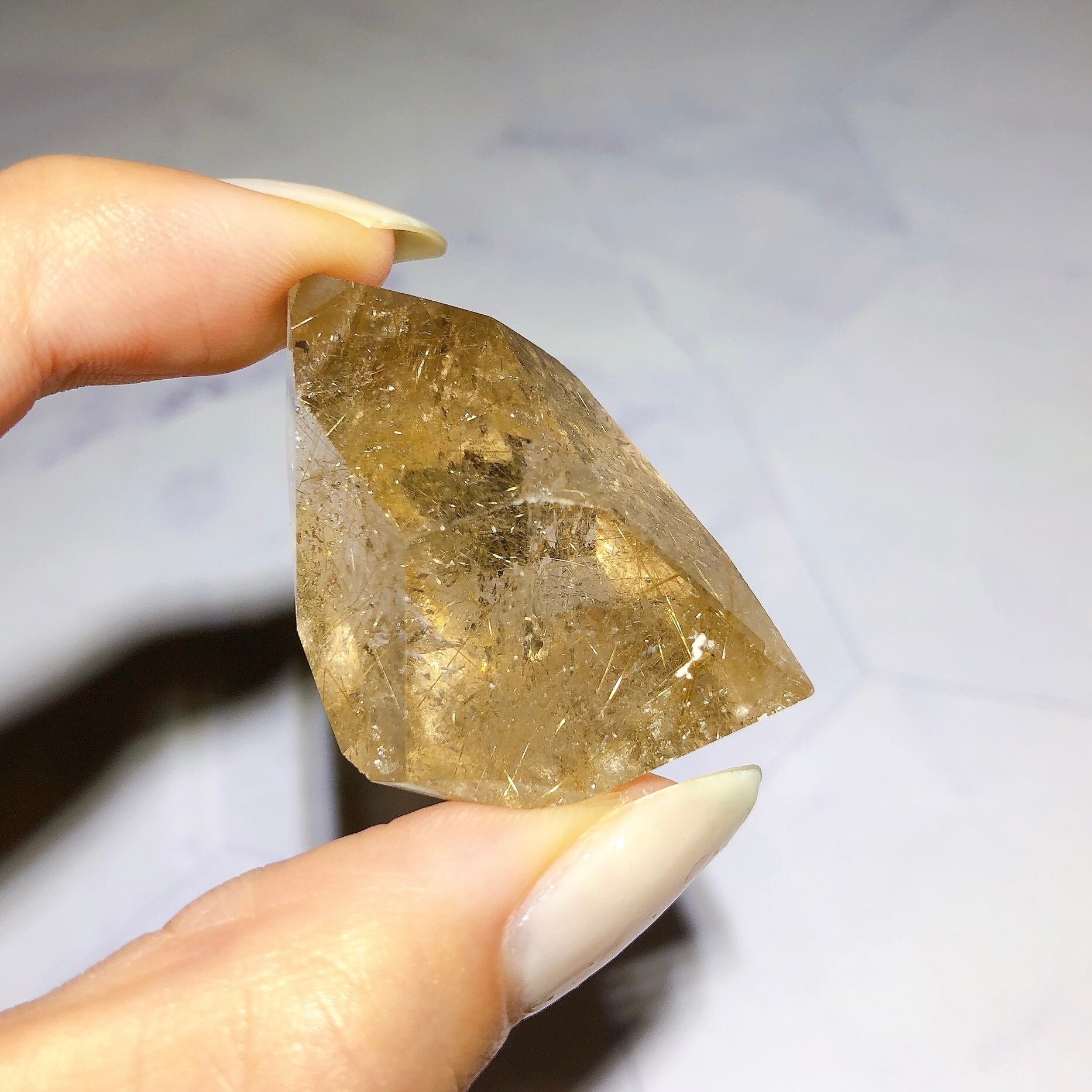 - 室内光で行っています。照明に当てているため、光の反射によって金針がより輝いて見えます。石をご覧いただく環境によって、見え方が多少異なる場合がございます。