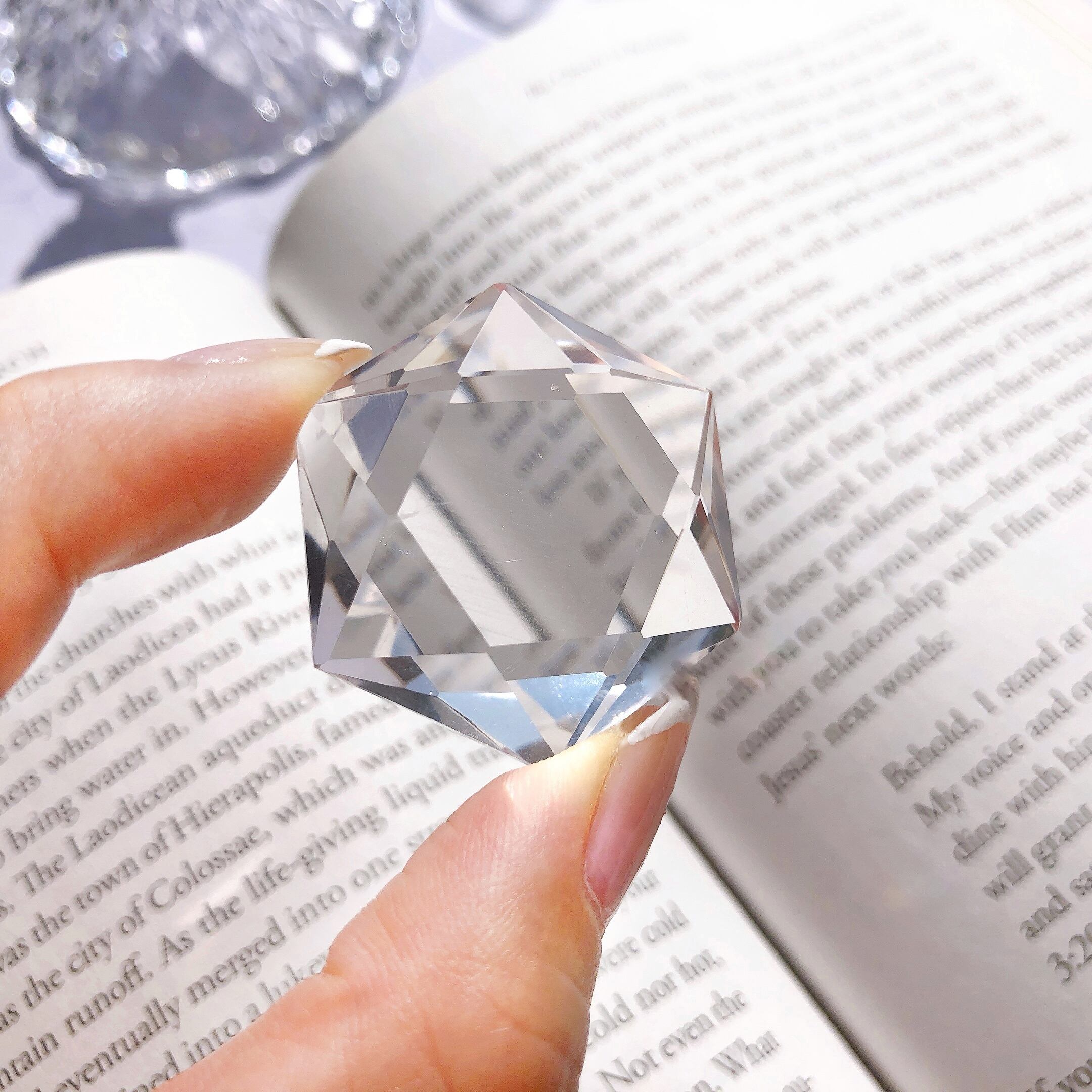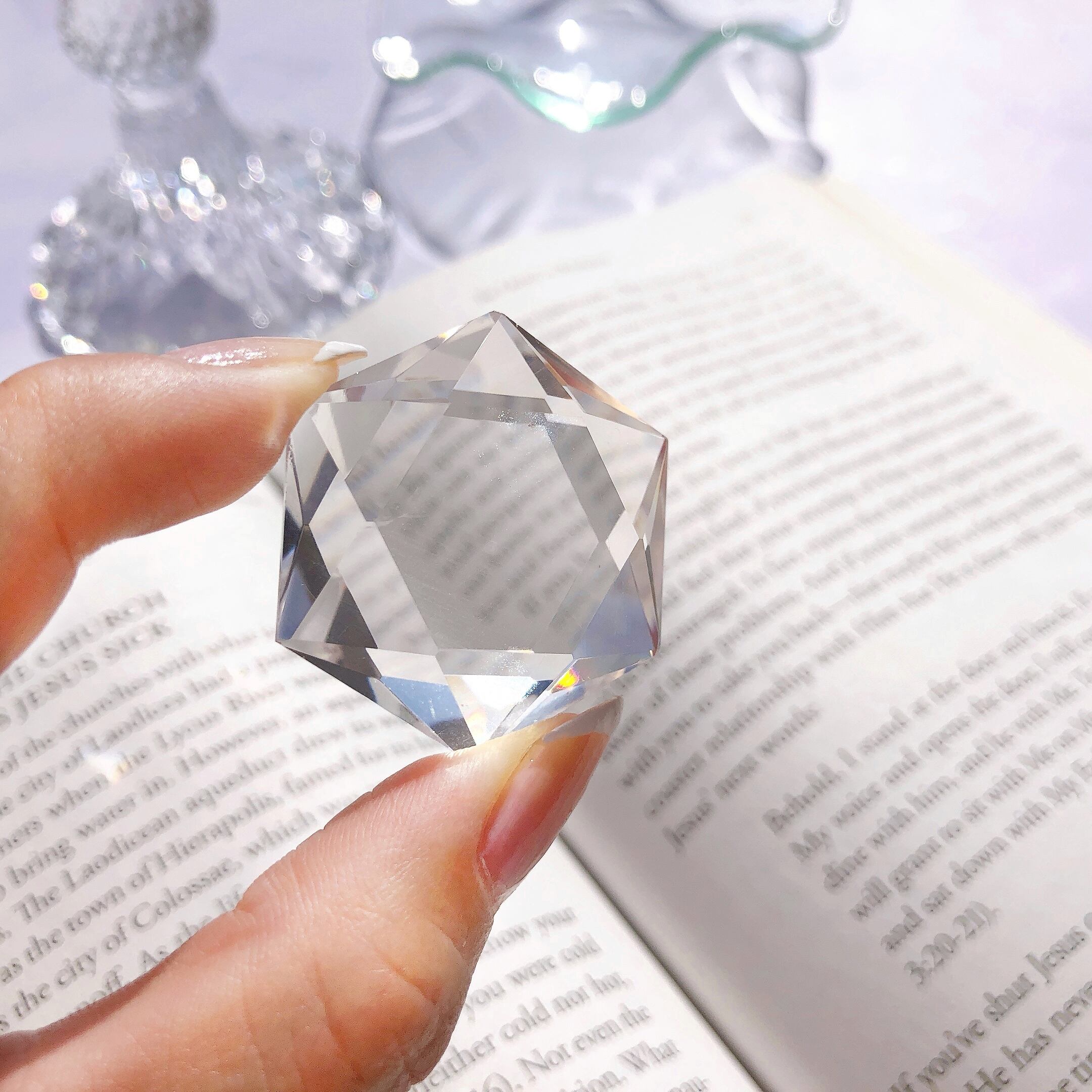 水のように澄んだ、透明度の非常に高いクリアクォーツ。ヘキサグラム・六芒星にジェムカットが施されています。