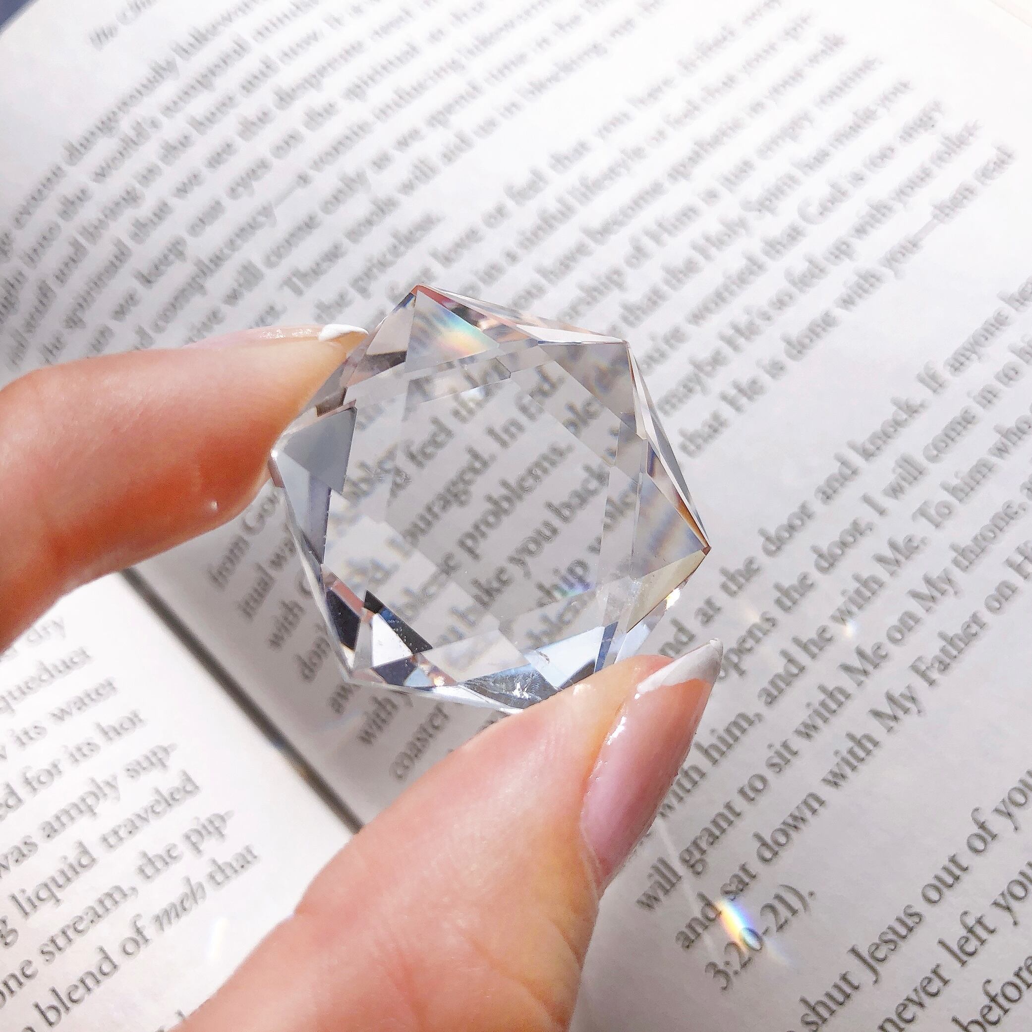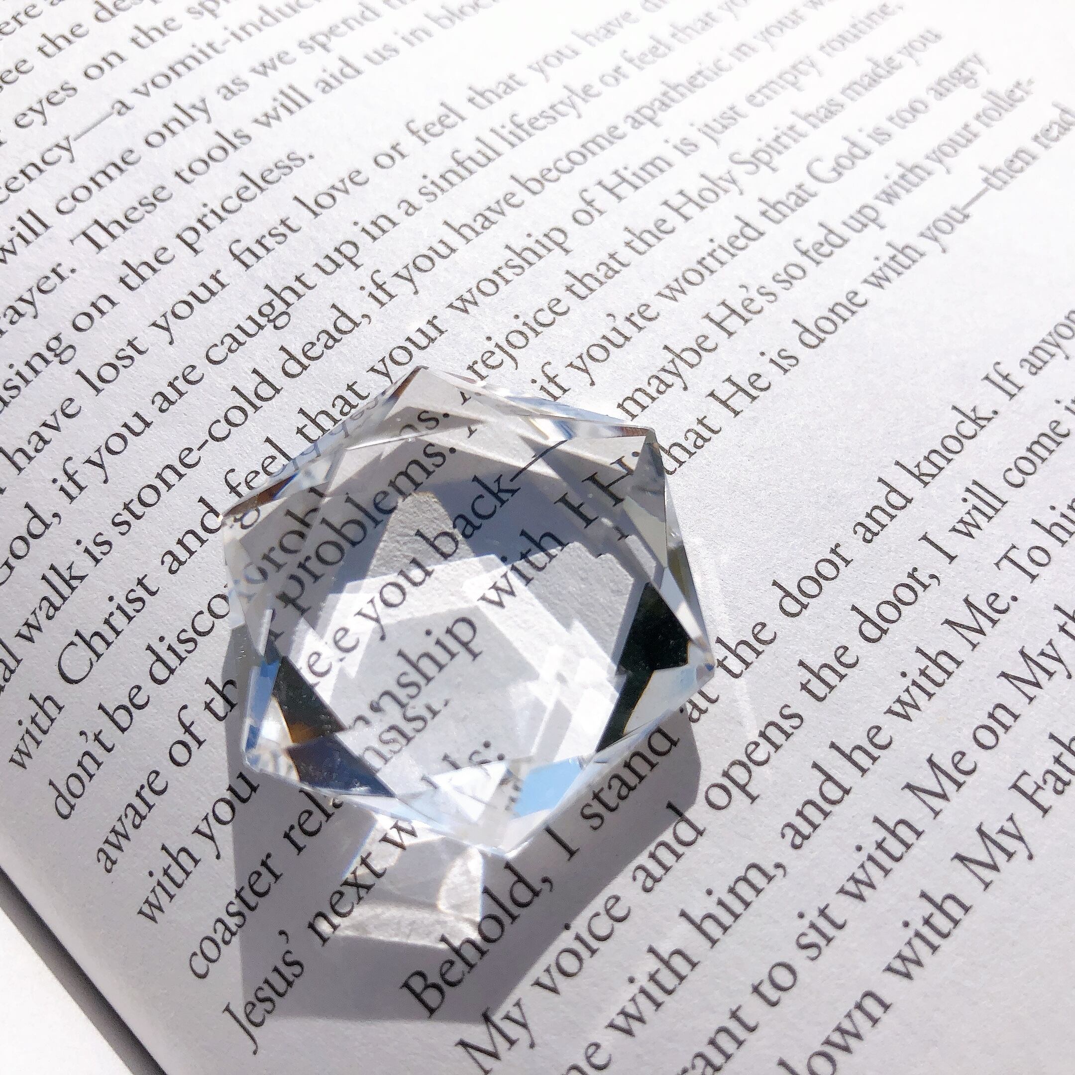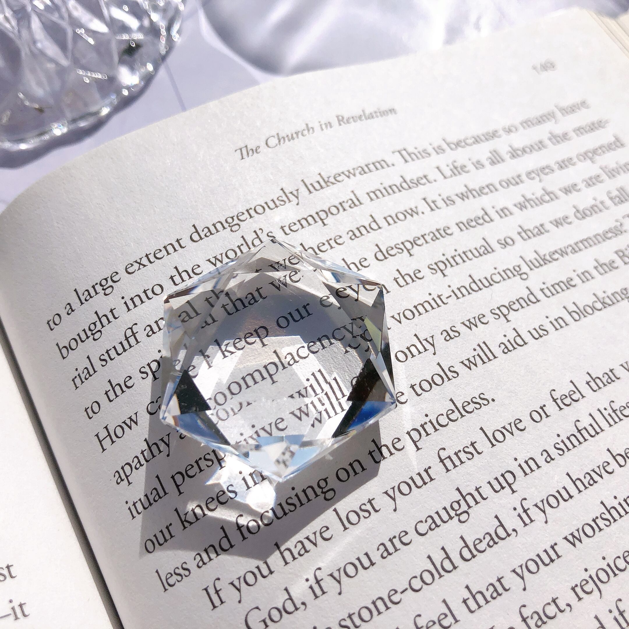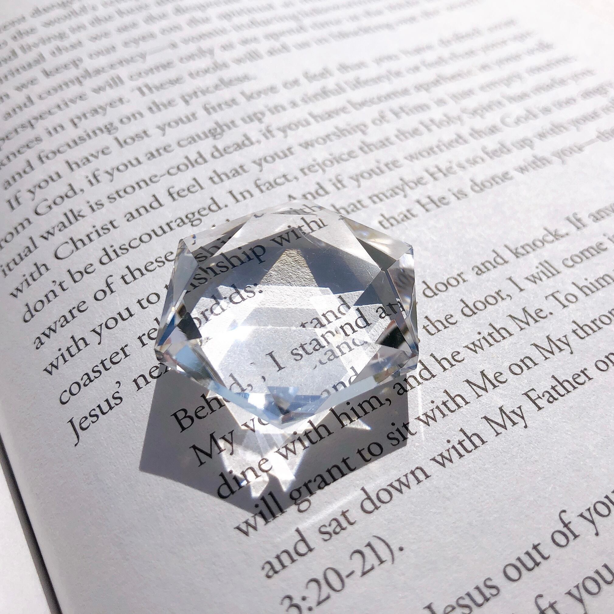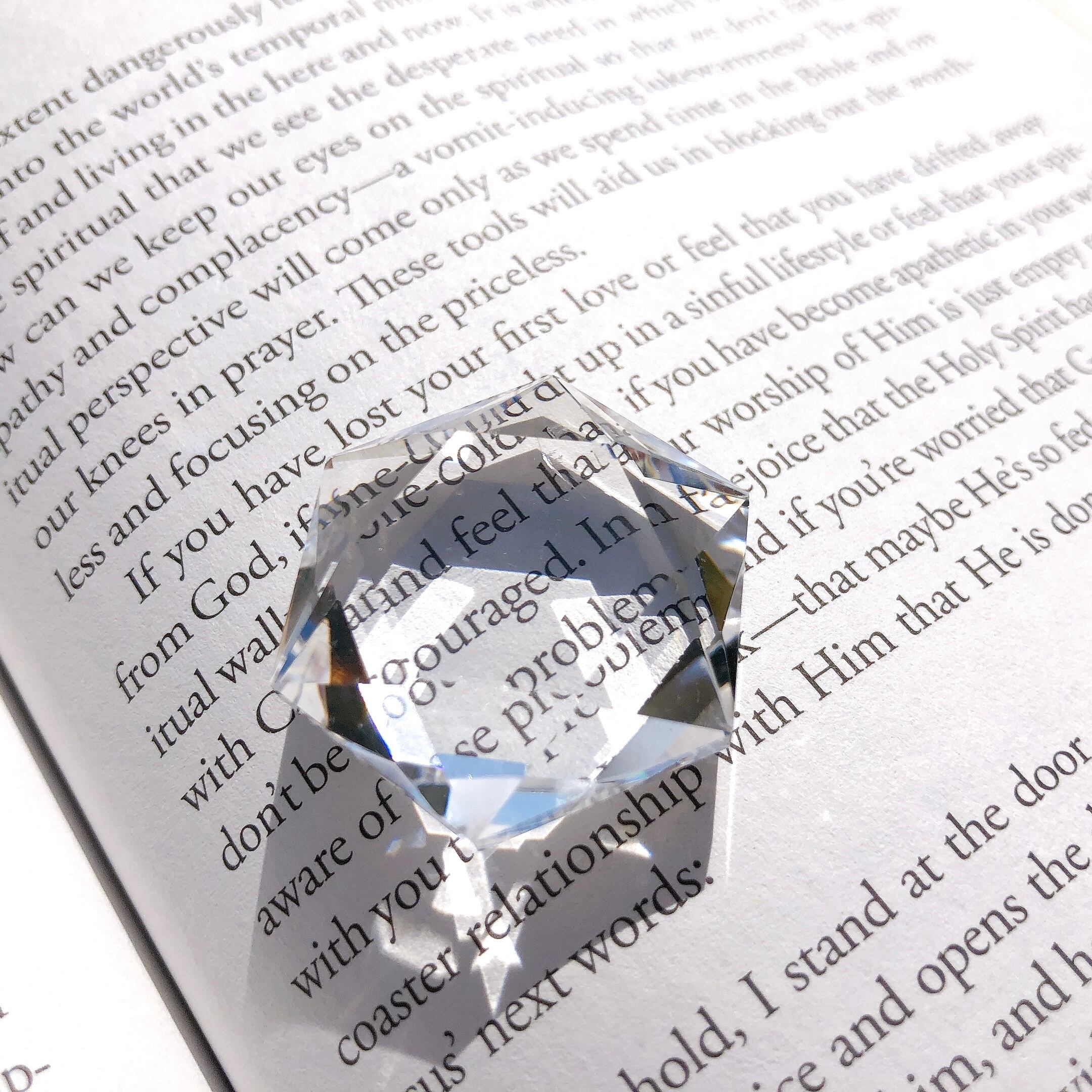水のように澄んだ、透明度の非常に高いクリアクォーツ。ヘキサグラム・六芒星にジェムカットが施されています。