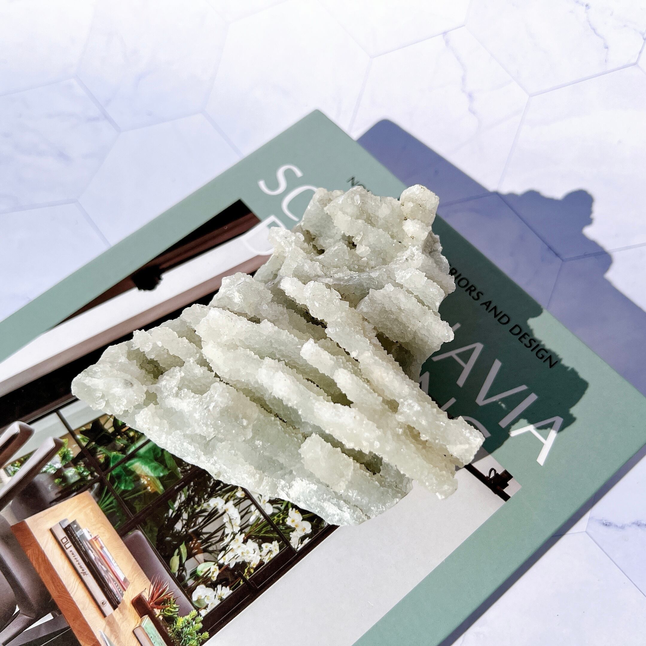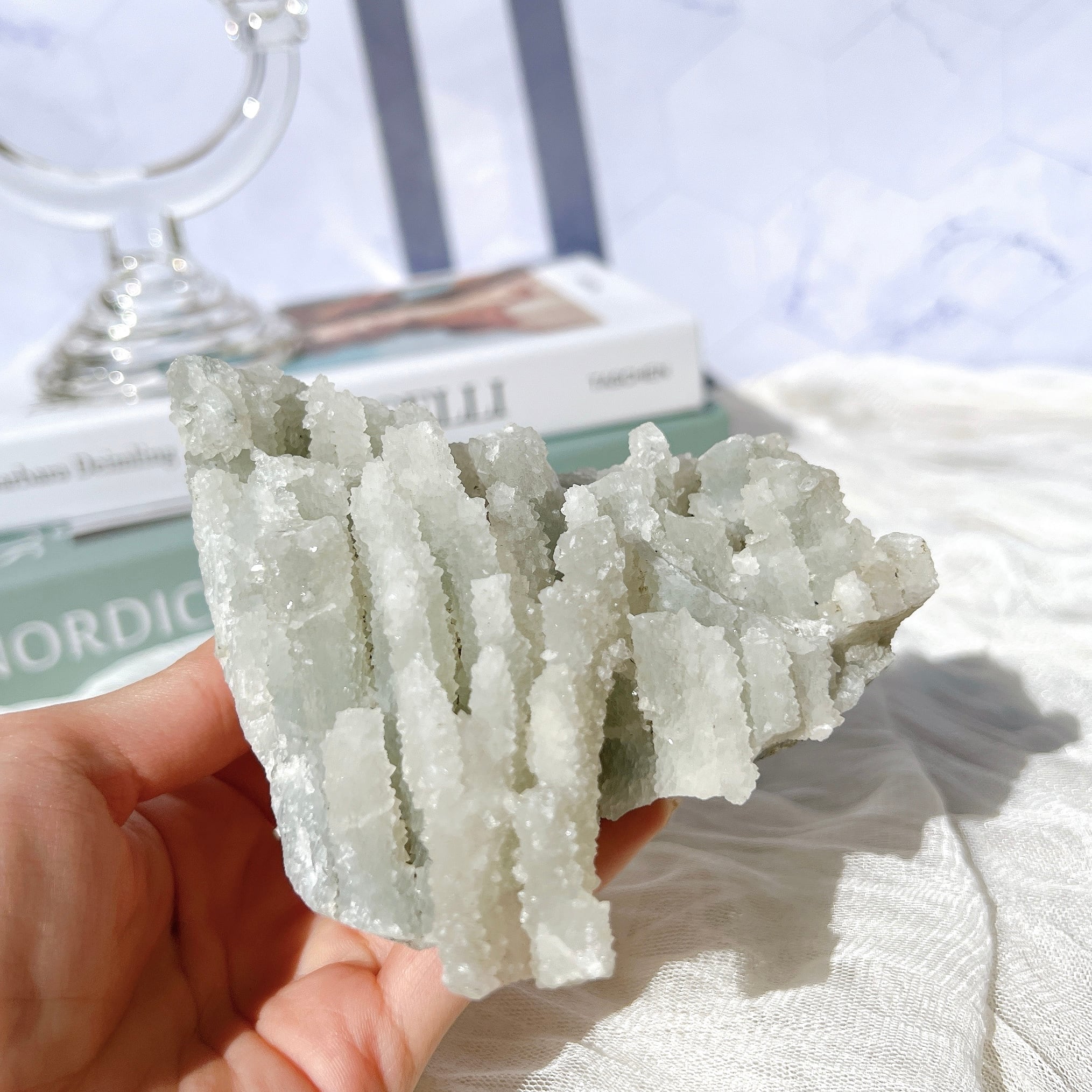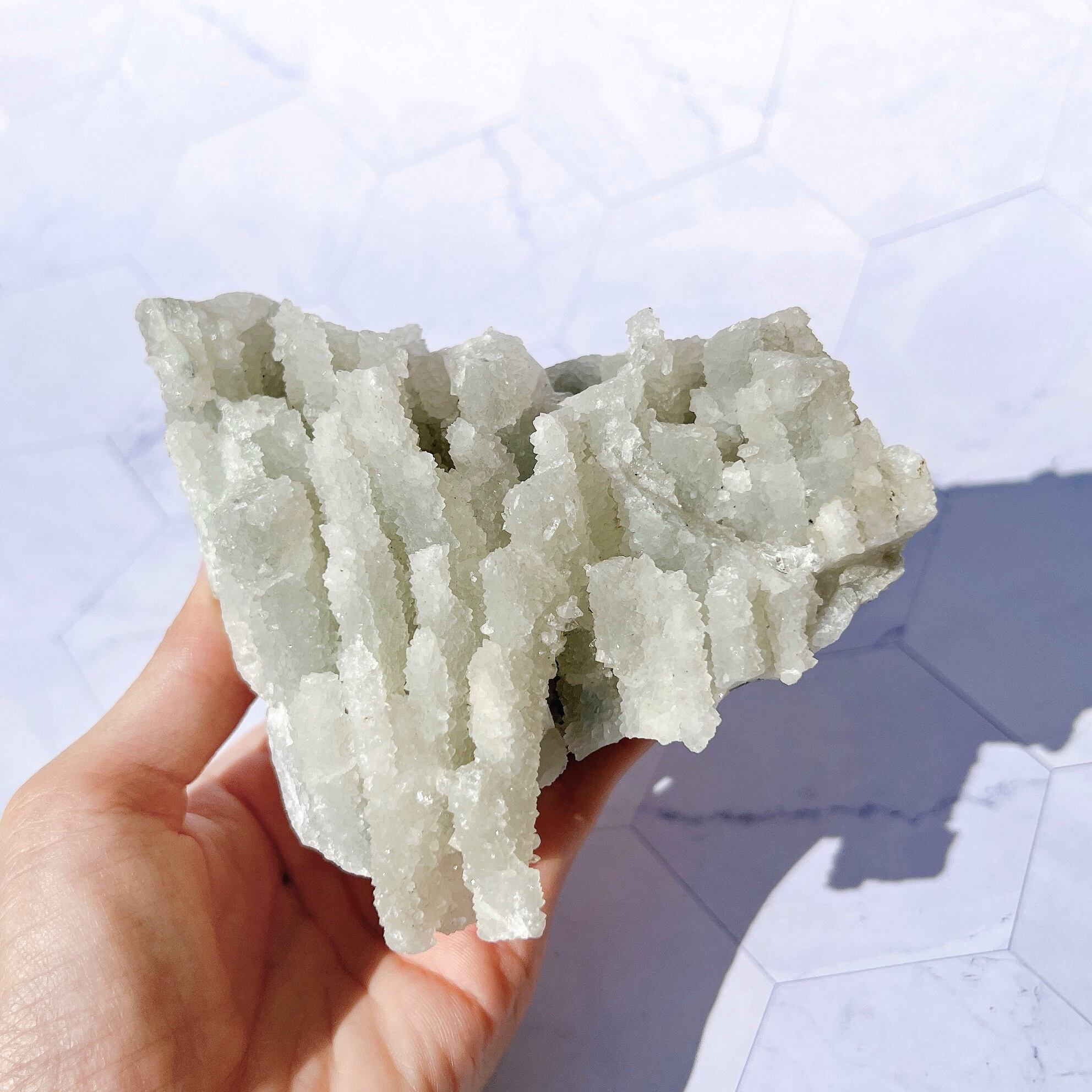 柱状の鍾乳石のように結晶が形成された、ユニークで芸術的なフォルムをしています。