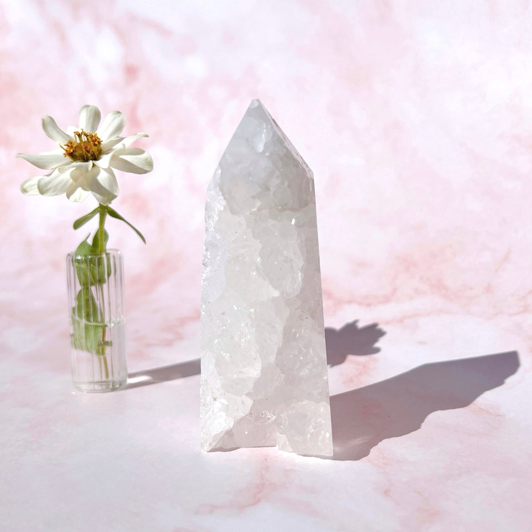 ドゥルージークォーツ ⊹ クラスター ⊹ タワー / ポイント / 160g / DQ03