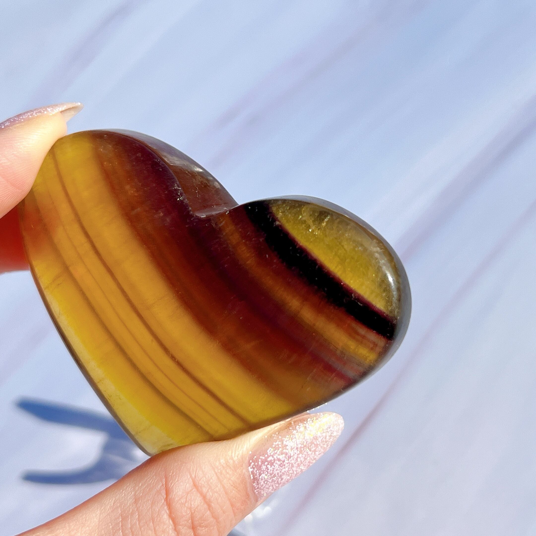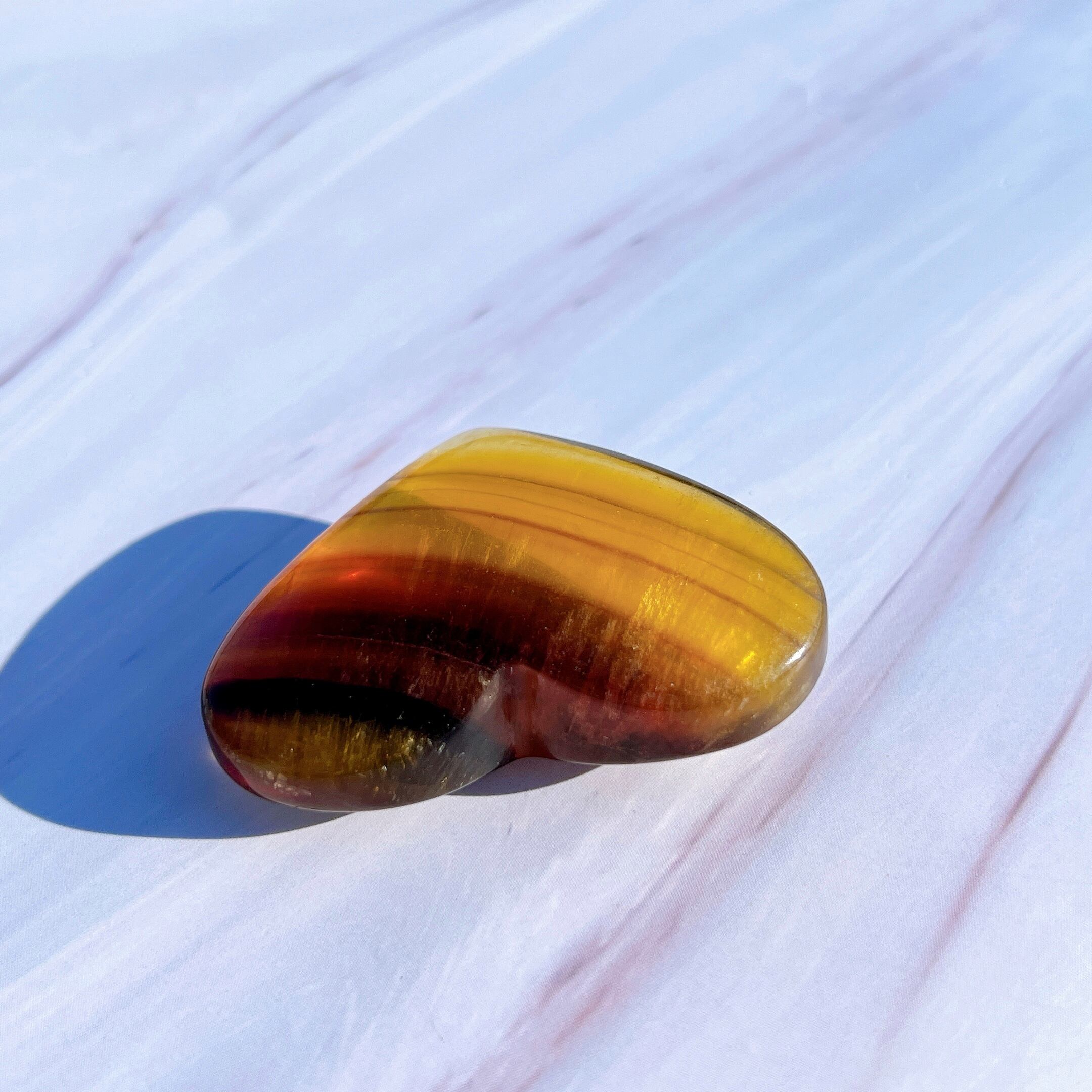 ブラウン〜パープルの模様が美しい、イエローフローライト。