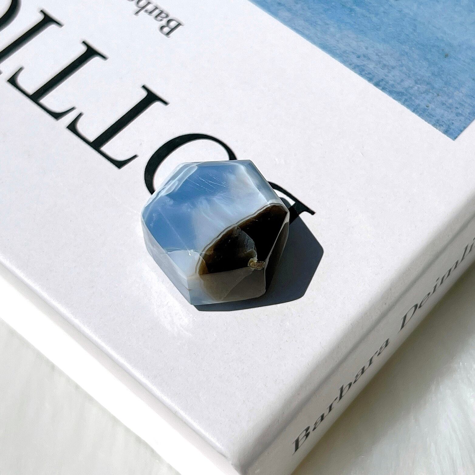 今回はくすみのない美しい発色のものをセレクトしています。5-10グラム程度のアクセサリー用ルースとして流通することの多い石ですが、こちらは厚みのあるヘキサゴン型にカットを施しています。研磨・加工はインドの工房でひとつひとつ手作業で行われているため、研磨の甘いところや傷等あるかもしれません。写真にてご確認いただけますと幸いです。