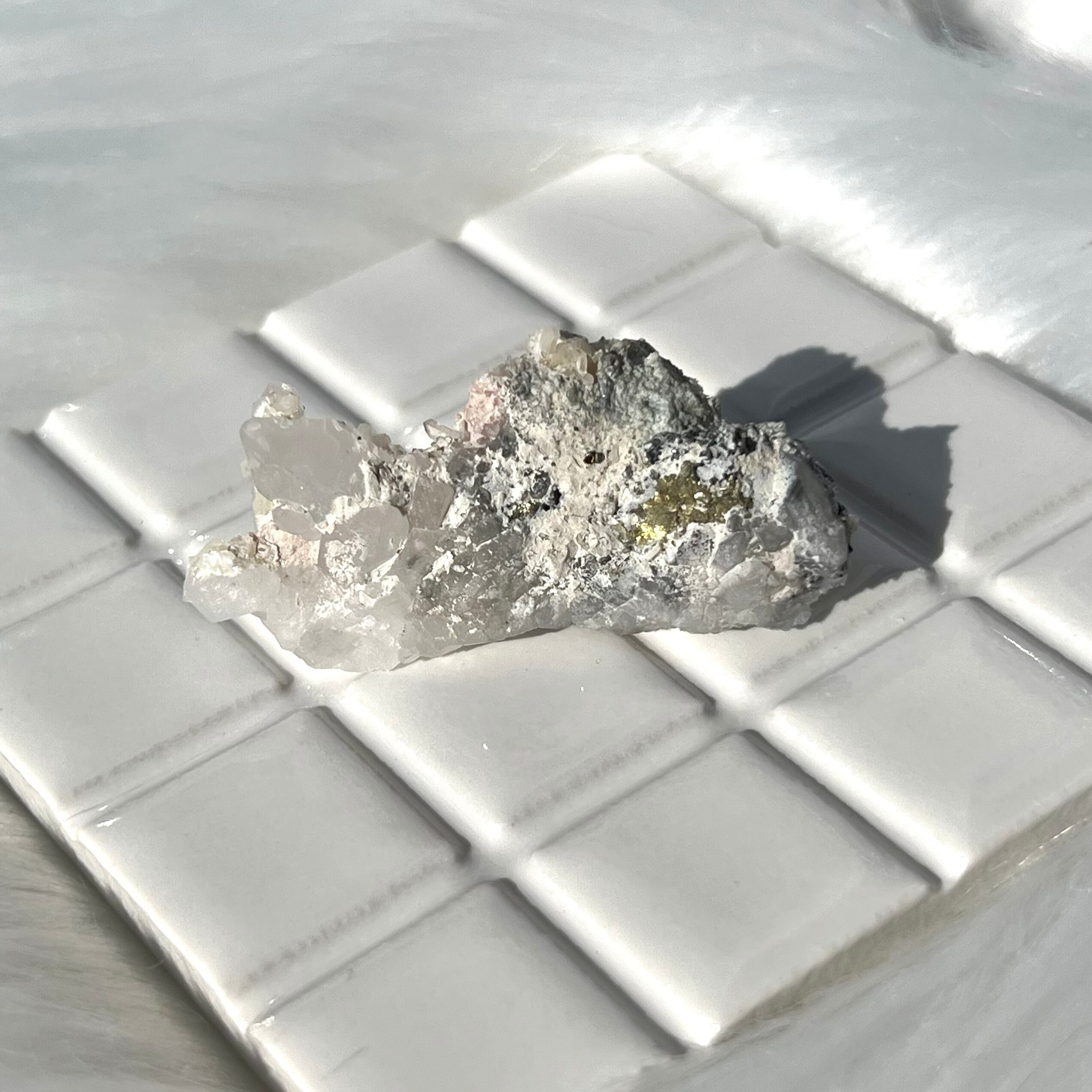 こちらの原石はクォーツと、わずかにパイライトが共生したユニークなピース。