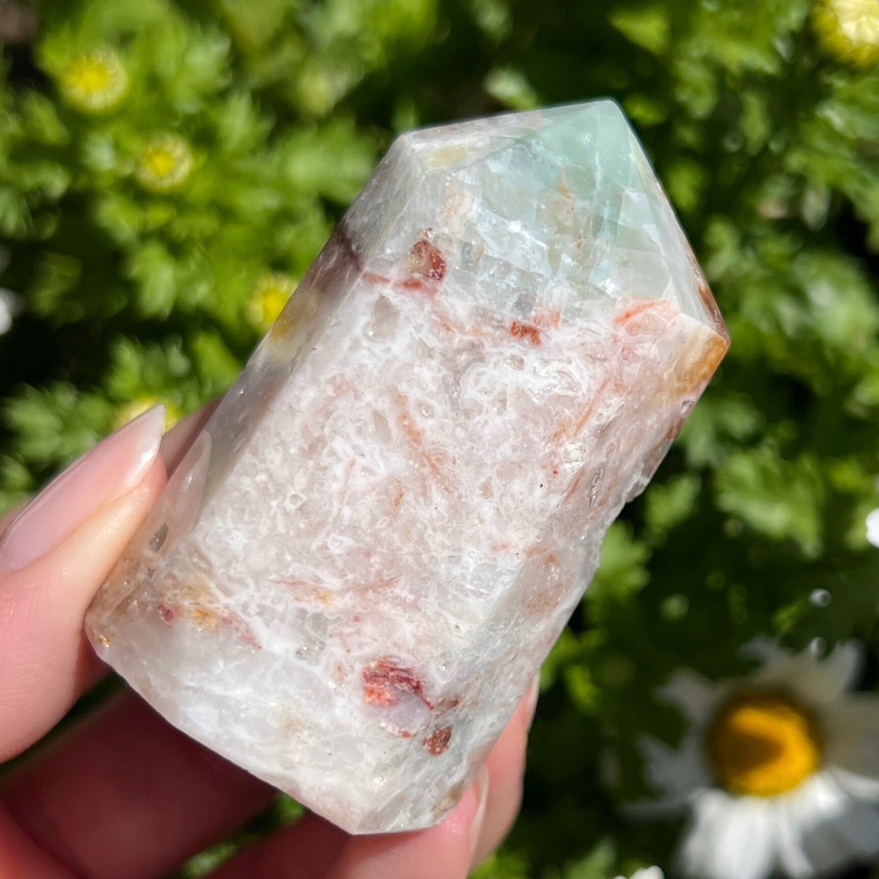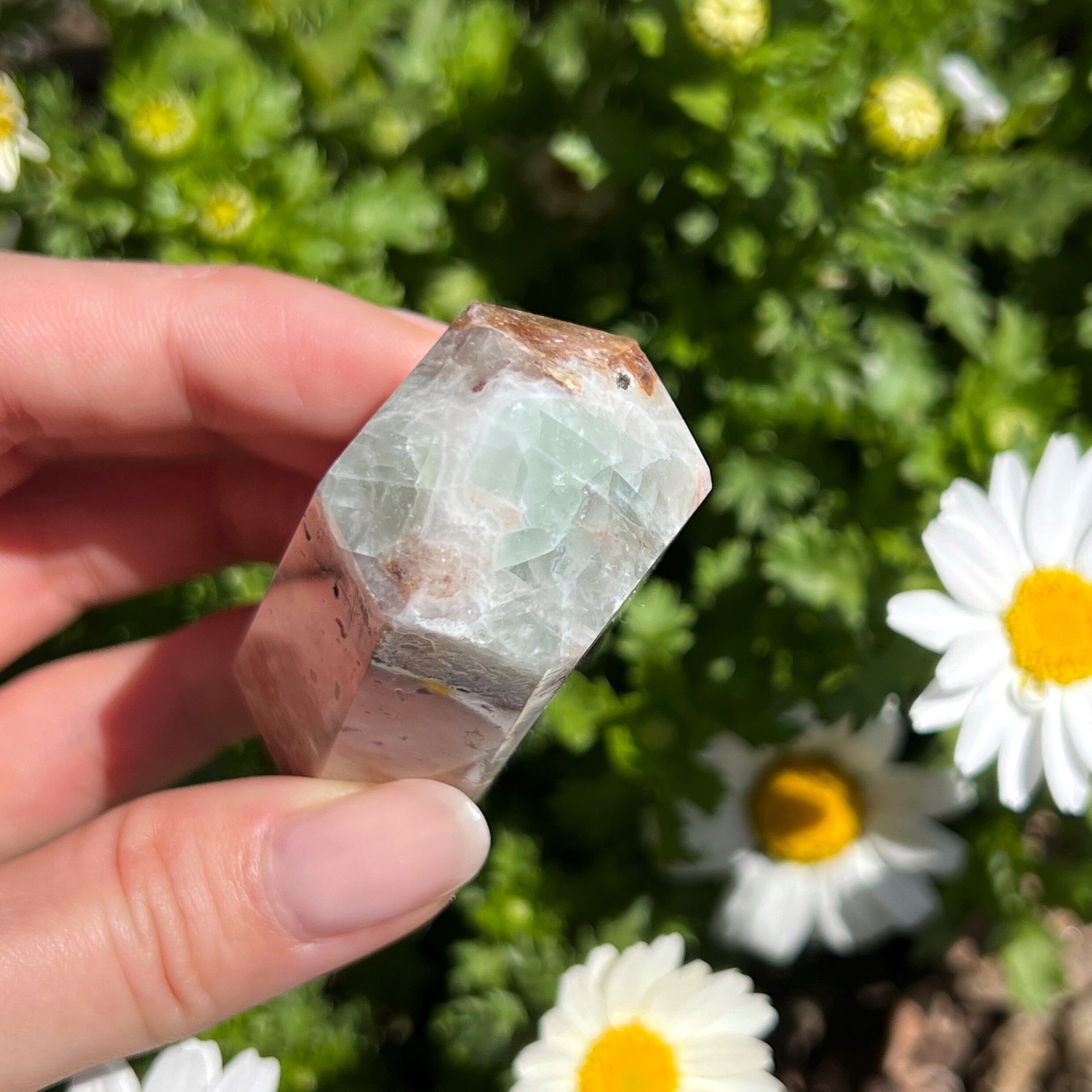 フローライトと瑪瑙(アゲート)が共生したユニークなタワーのご紹介です。