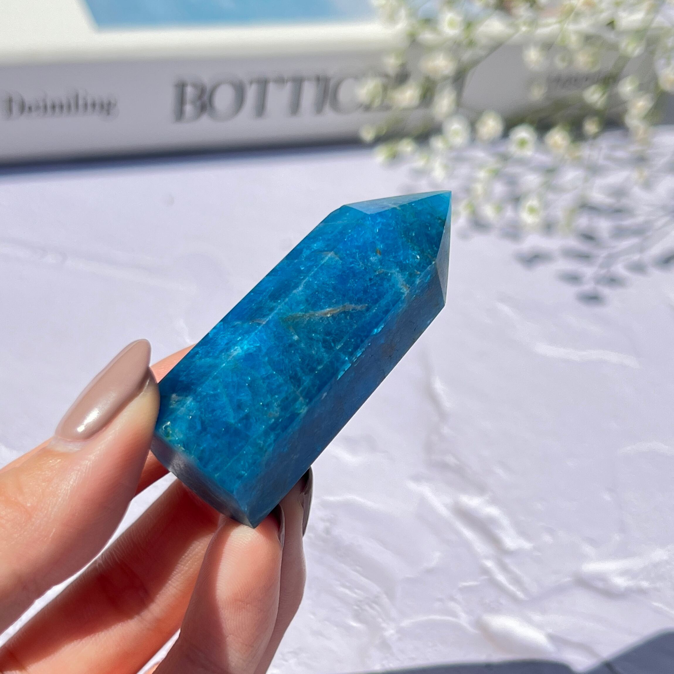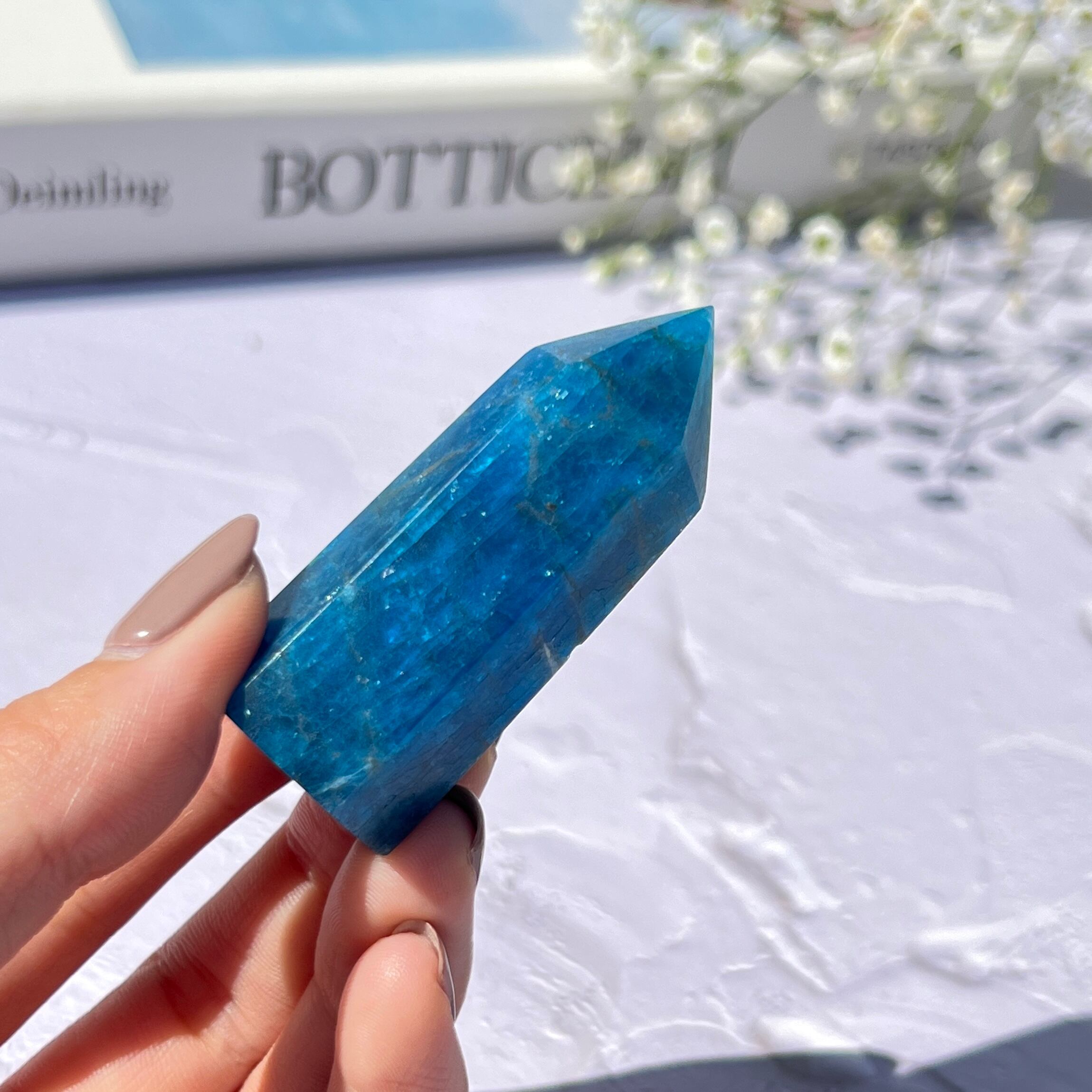 高品質 ブルーアパタイト ⊹ タワー ⊹ 燐灰石〈マダガスカル産〉BA03