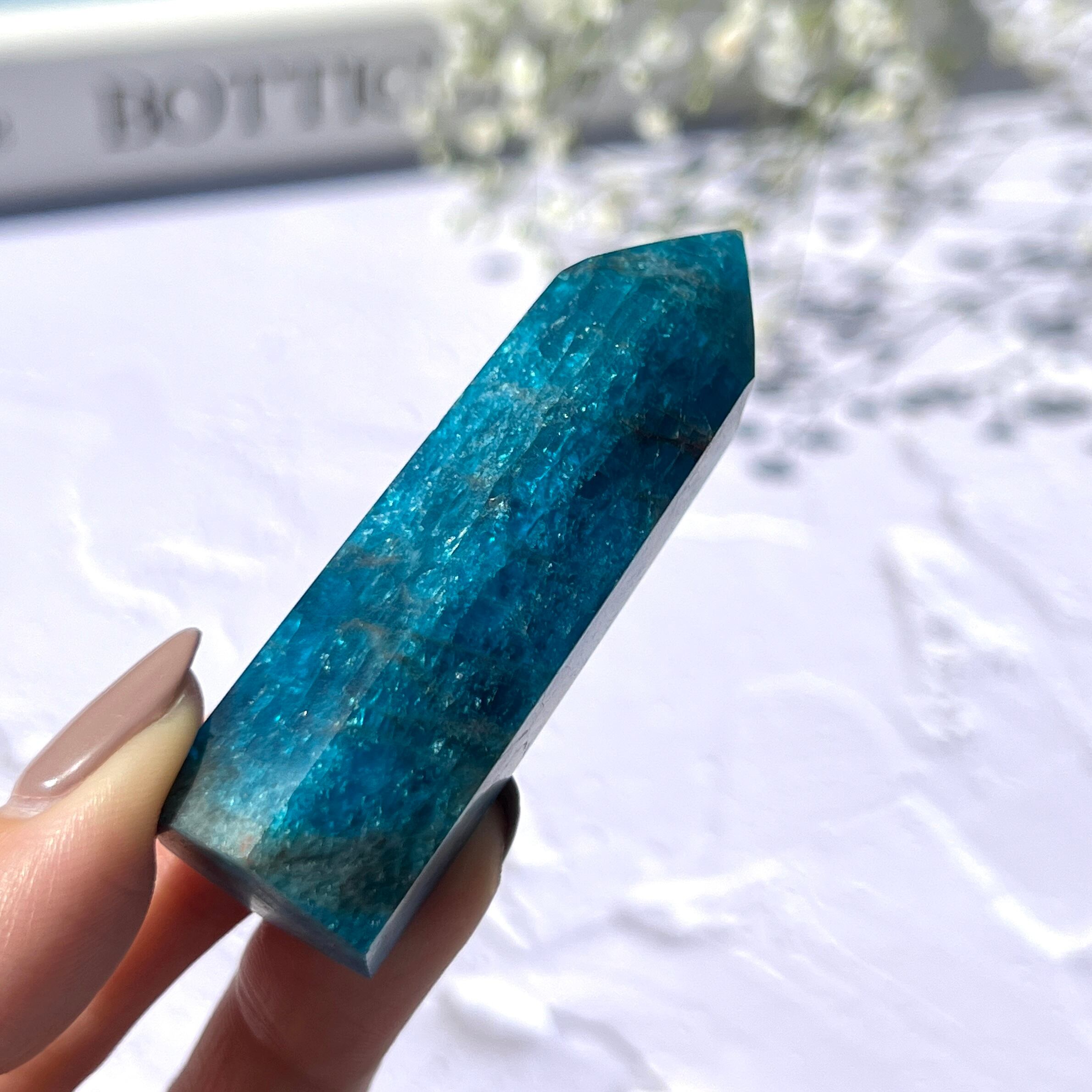 高品質 ブルーアパタイト ⊹ タワー ⊹ 燐灰石〈マダガスカル産〉BA02