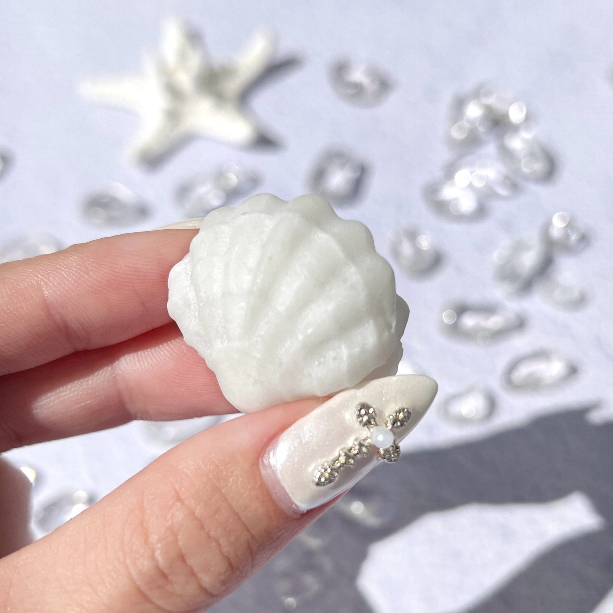 コロンとした貝の形が可愛らしいホワイトジェイドのカービング₊ ⊹
