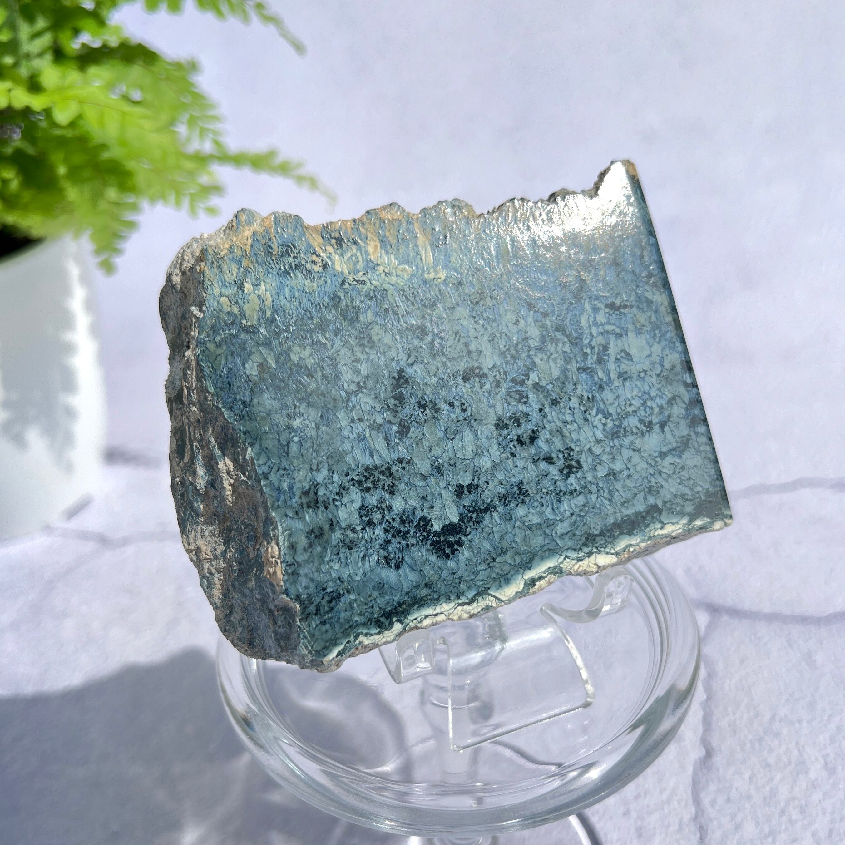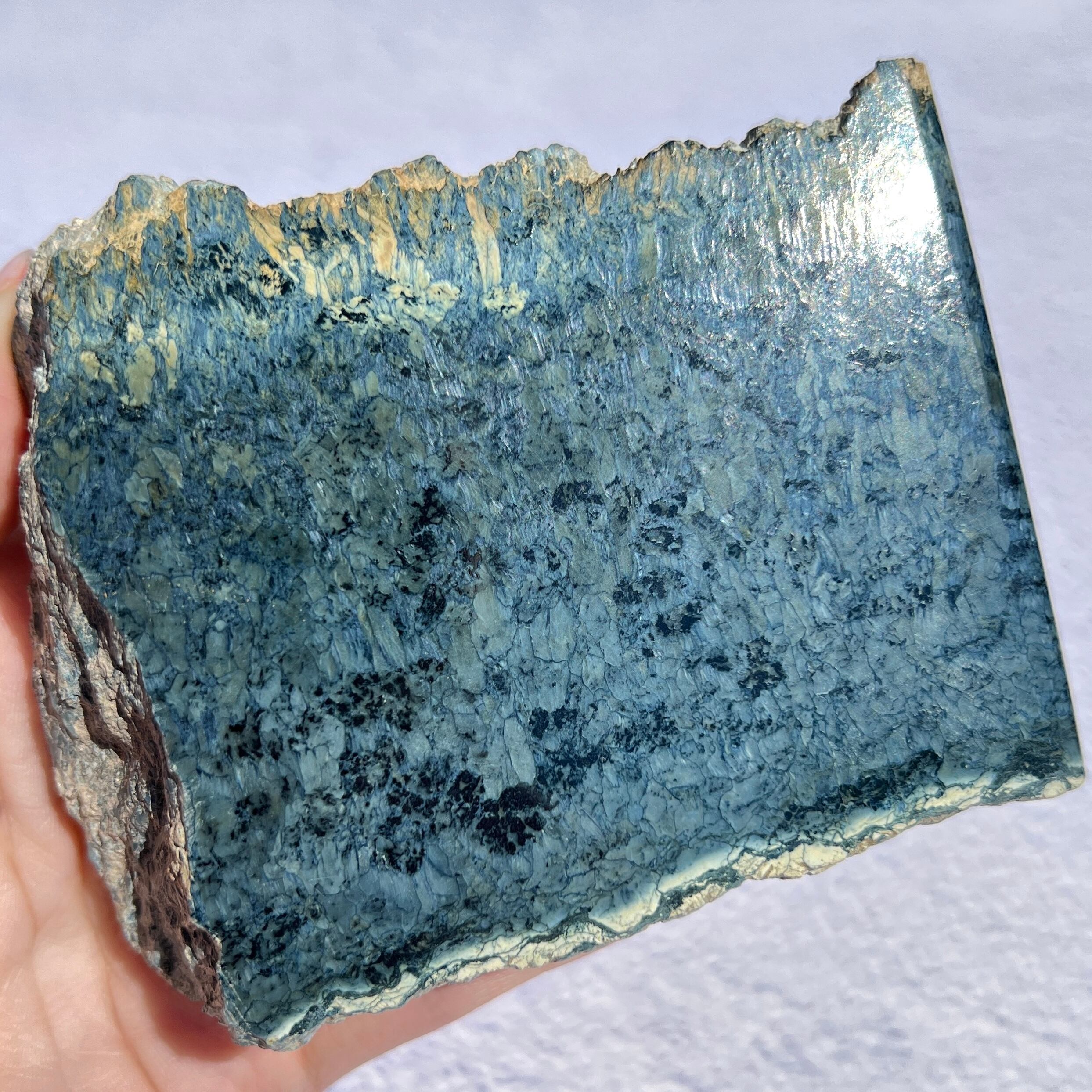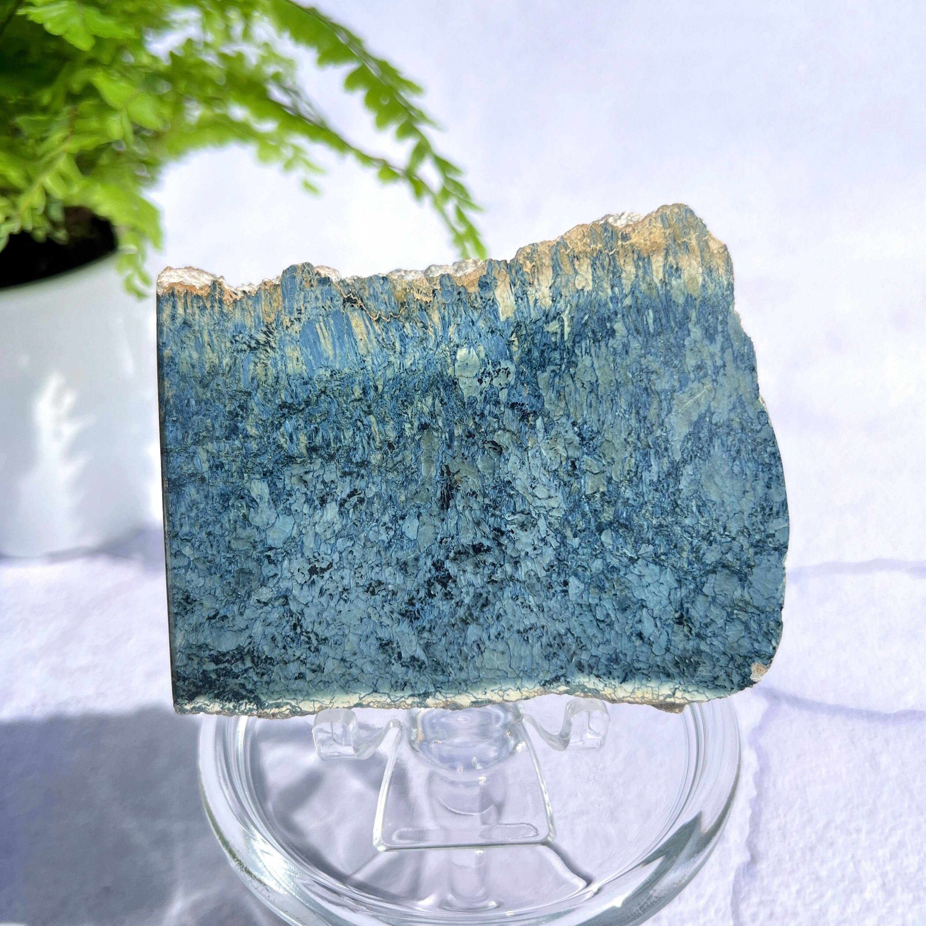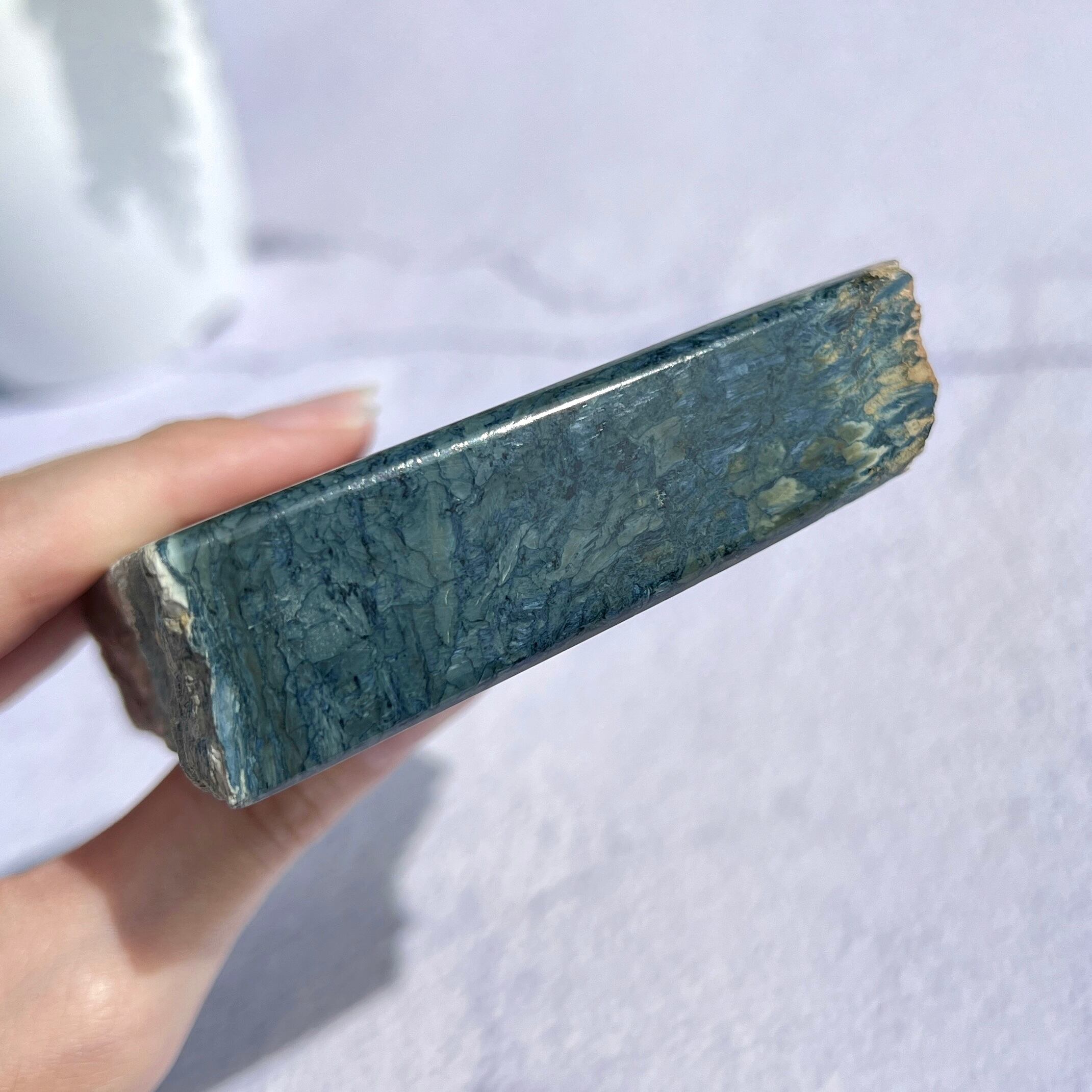 鉱物的にはブルークロシドライト、またはリーベカイトです。(表面がコーティングされているので、石綿の持つ毒性はありません。)